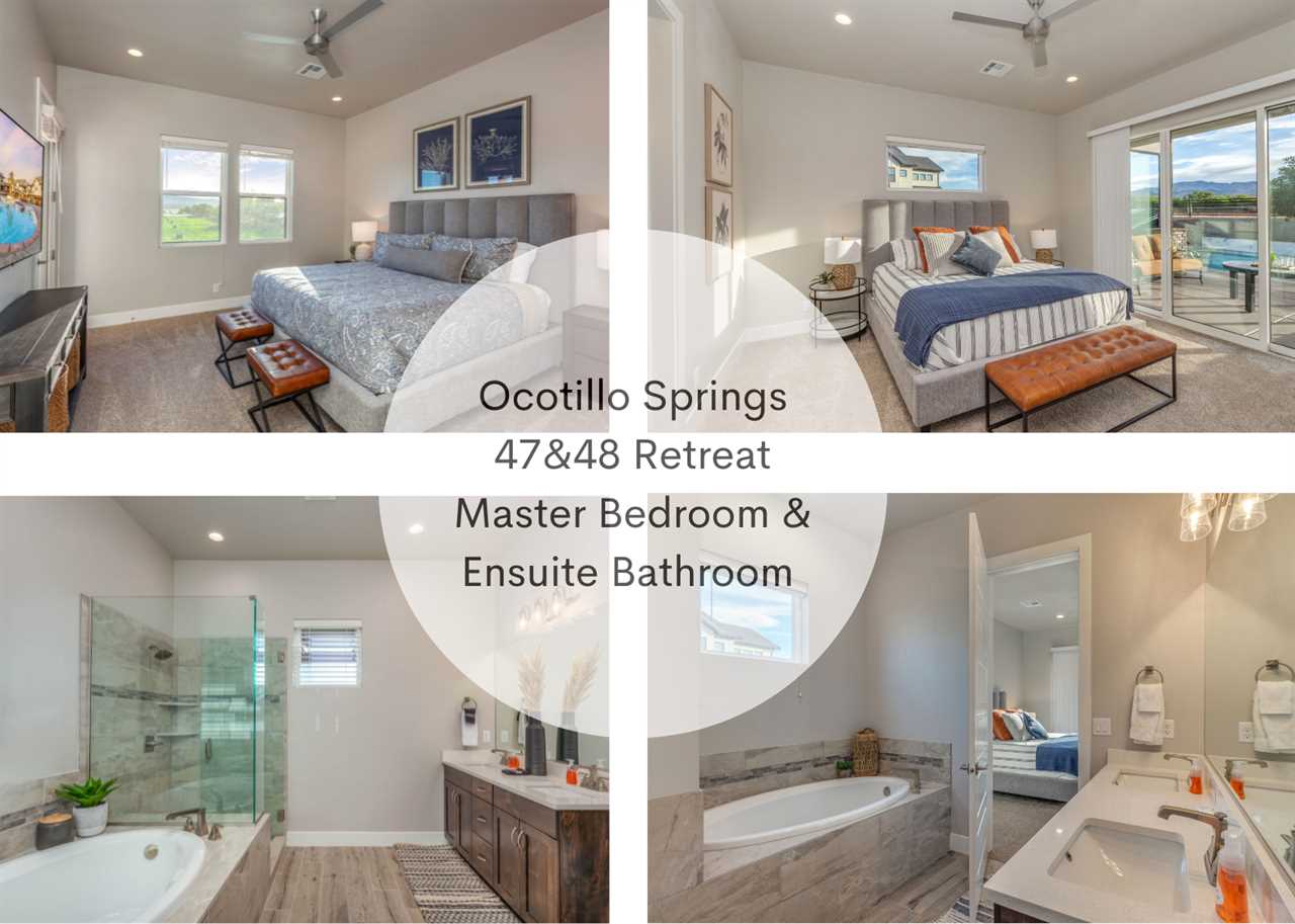 Spend your next southern Utah vacation at Ocotillo Retreat at Ocotillo Springs, the perfect place to enjoy the desert sun! Together, the homes consist of 8 bedrooms / 8.5 bathrooms and can sleep up to 31 guests! Keep all of your loved ones close, and have the convenience of being right next door to each other. Perfect for family reunions, corporate trips, or any large group coming to Southern Utah. Gaze up at the stars from the comfort of the hot tub or lounge by the private pool while the kids play in the resort splash pad. Located in Santa Clara, within the Ocotillo Springs complex, these homes are in one of the best communities around. Within close proximity to Snow Canyon State Park and Gunlock Reservoir, you will never run out of things to do!