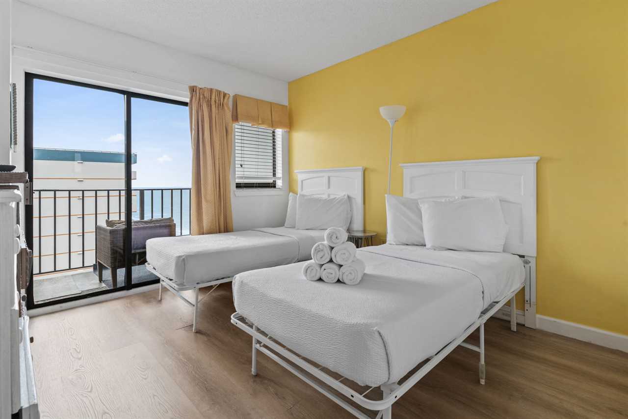 The search for your next vacation stops here! Check out this 11th floor, ocean view, 2-bedroom apartment located at the Palace Resort in Myrtle Beach, SC. The condo is fully furnished with 1 queen sized bed, 2 twin sized beds, a sleeper sofa, and will accommodate 6 guests.