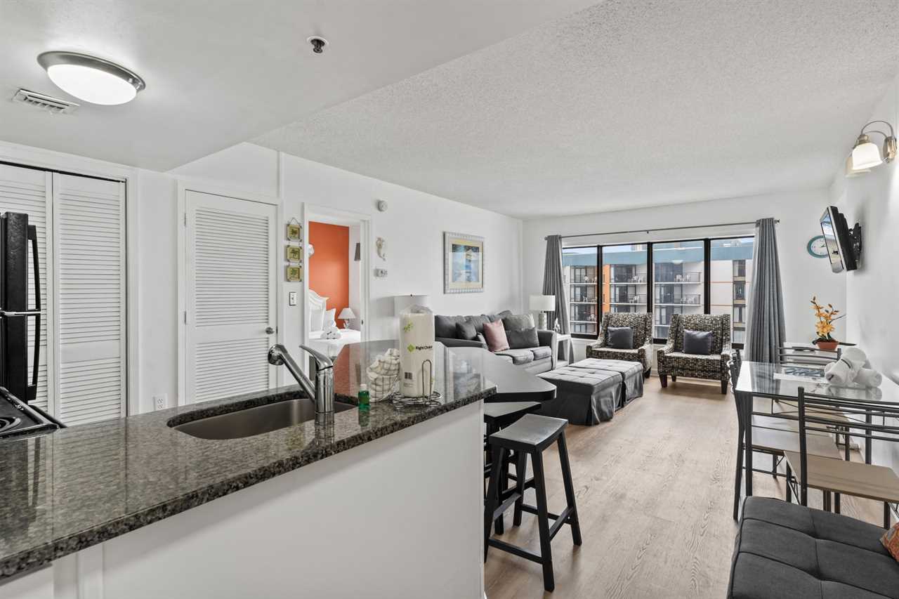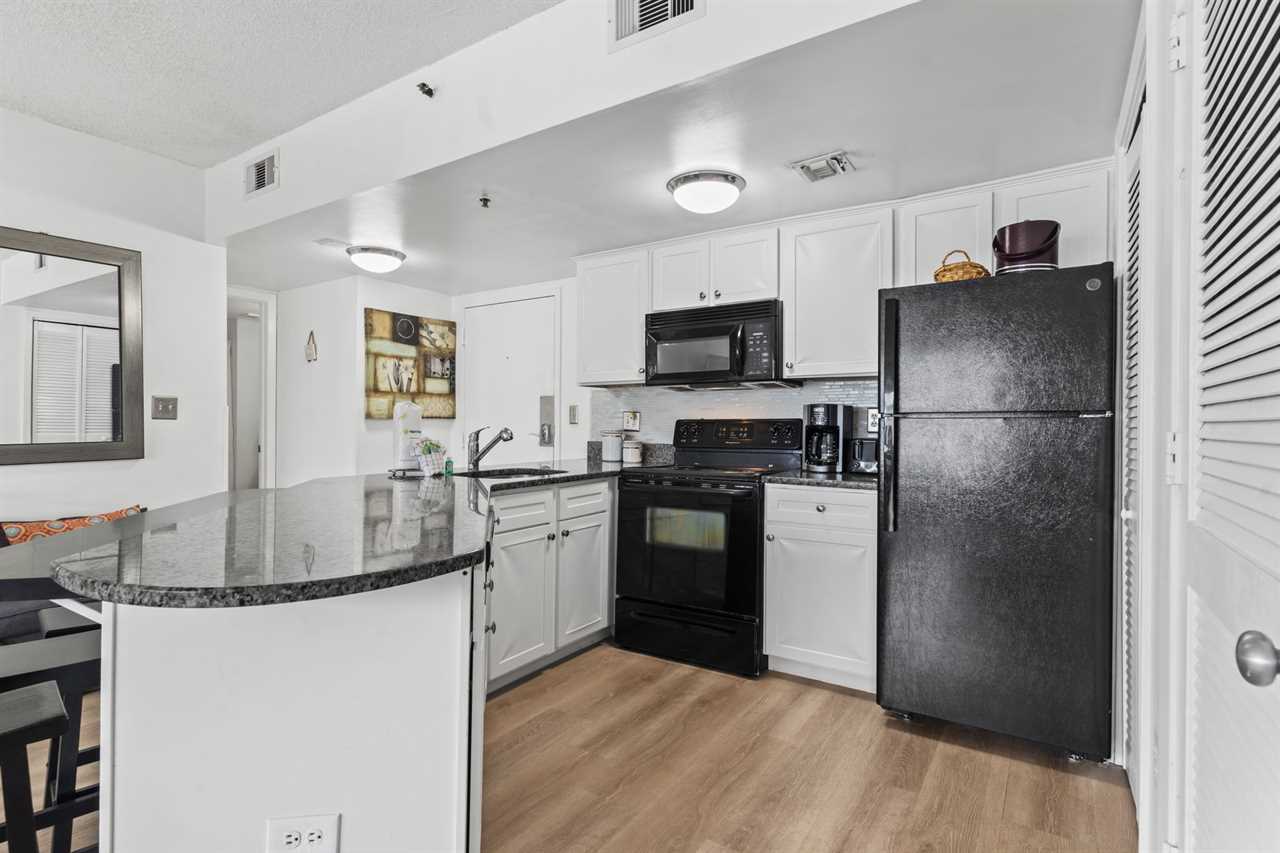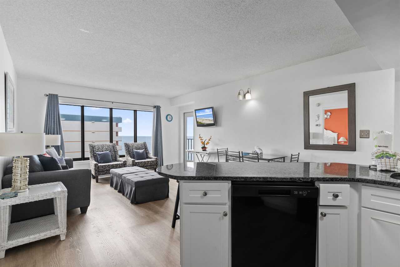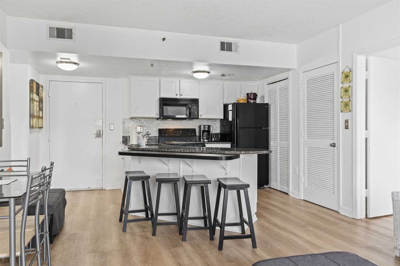 The kitchen is absolutely incredible and features full size appliances including a new fridge, freezer, mounted microwave, stove, oven, a new breakfast bar with bar stools for seating, and so much more! We provide all basic cookware, utensils, dishes and silver, glassware, and everything you will need to cook a full meal for the family. Unlike many rentals, this listing also features a new full-size dishwasher as well as small appliances like a coffee maker and toaster. Cooking a large meal or a small snack will not be a problem! For guests who prefer to dine out, The Palace is a short walk / ride from many restaurants. Myrtle Beach also offers food delivery services such as Uber Eats and DoorDash!