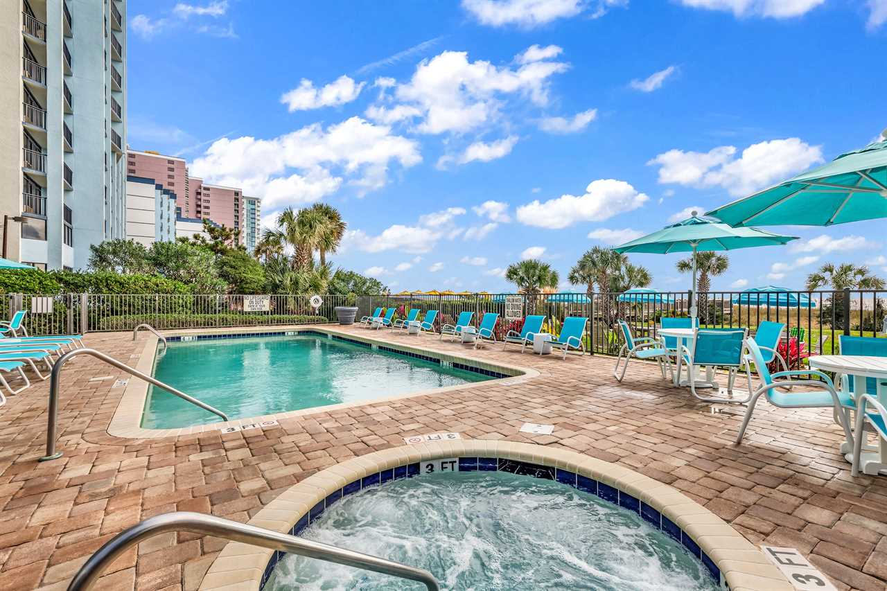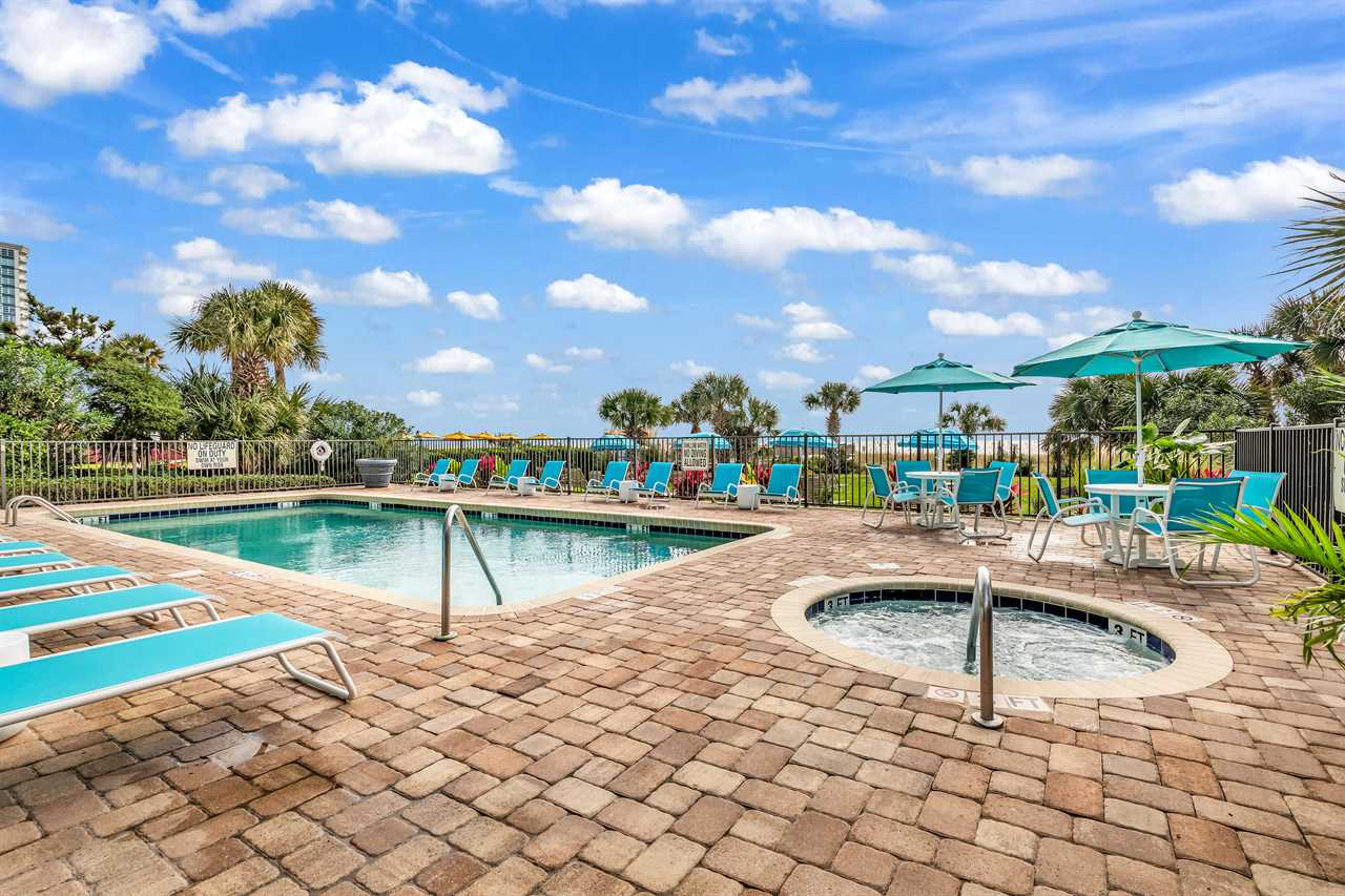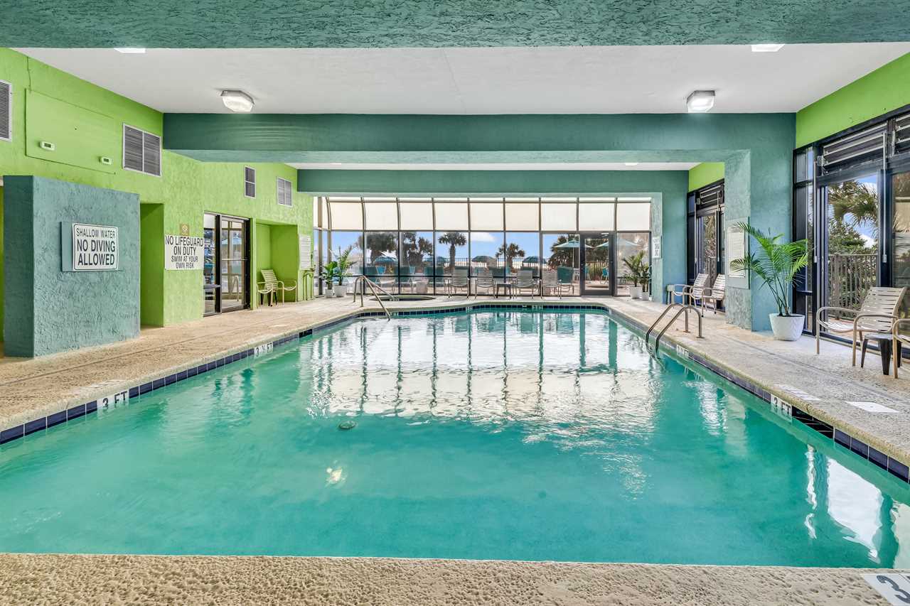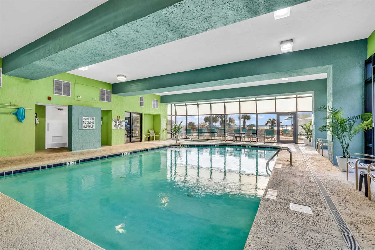 The Meridian Plaza offers 1 indoor and 1 outdoor pool, as well as 1 indoor and 1 outdoor hot tub. Onsite laundry is available to our guests as well! We do not provide beach chairs, but guests can rent them seasonally from lifeguards on the beach.