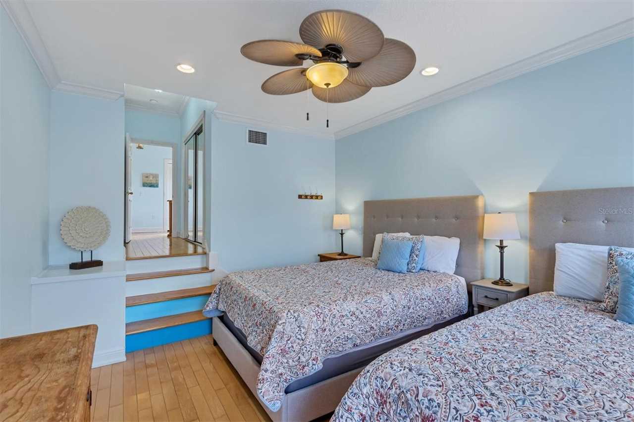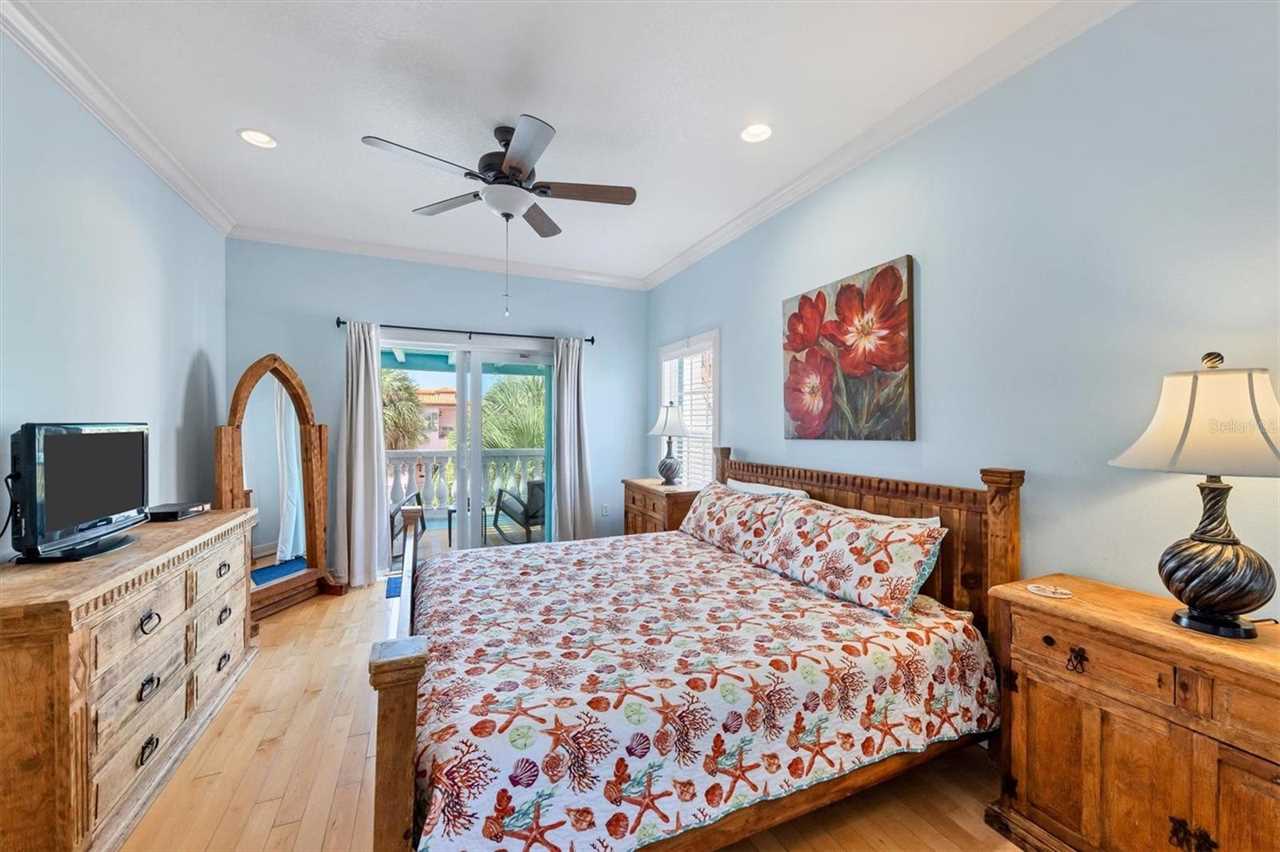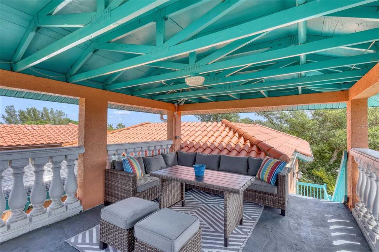 When you go up the stairs and enter the house, you walk into the main floor which is made up of a large dinning area, balcony, kitchen, living room with TV, one bedroom with a king size bed, and a bathroom. The kitchen is equipped with all the stainless steel appliances, an island with a breakfast bar, and everything you would need to prepare meals. When you go upstairs to the third floor there are two bedrooms including the master bedroom with a king size bed and a spare room with two queen size beds. The master bedroom is amazing and has everything you could want including a private balcony and an en-suite bathroom equipped with a bidet, shower and tub. The third floor also give access to the stairs that lead to the roof top covered deck where you can lounge and enjoy the views of Anna Maria Island. If you are looking for the ideal beach vacation that has everything you want, then your search is over and book this amazing house!