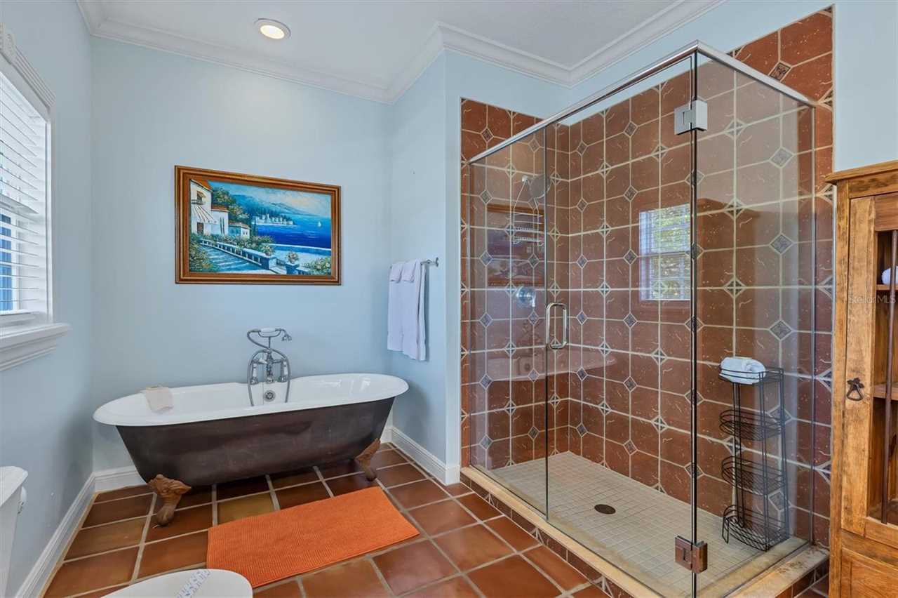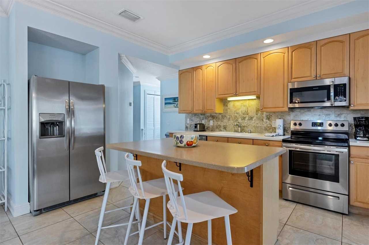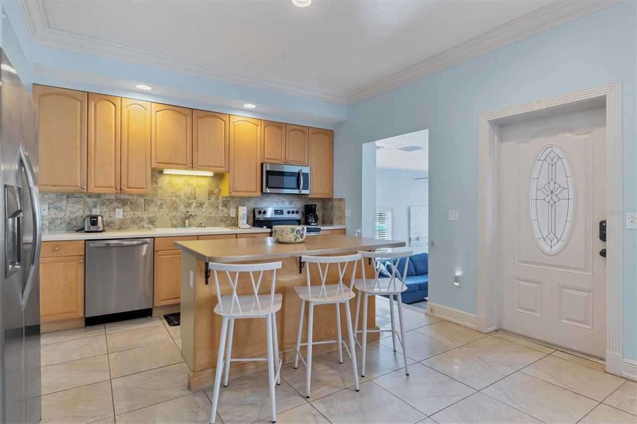 When you go up the stairs and enter the house, you walk into the main floor which is made up of a large dinning area, balcony, kitchen, living room with TV, one bedroom with a king size bed, and a bathroom. The kitchen is equipped with all the stainless steel appliances, an island with a breakfast bar, and everything you would need to prepare meals. When you go upstairs to the third floor there are two bedrooms including the master bedroom with a king size bed and a spare room with two queen size beds. The master bedroom is amazing and has everything you could want including a private balcony and an en-suite bathroom equipped with a bidet, shower and tub. The third floor also give access to the stairs that lead to the roof top covered deck where you can lounge and enjoy the views of Anna Maria Island. If you are looking for the ideal beach vacation that has everything you want, then your search is over and book this amazing house!