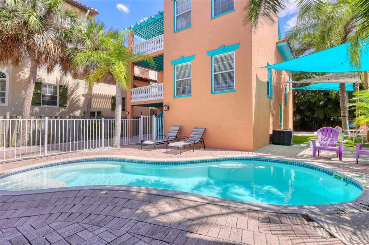 Introducing Island Oasis an extravagant three bedroom and three bathroom pool home centrally located on Anna Maria Island, and less than a five minute walk to the beach. This island home is approximately only one block away from the main beach access to Anna Maria Public Beach and Manatee Beach Park which offer all the amenities one of the best beaches in the country can offer. When you are not soaking in the sun and sinking your toes in the soft sands at the beach just down the street, this home has a lot to offer to continue your amazing beach vacation on Anna Maria Island. Relax by the heated pool with turquoise blue canopies or sit back and enjoy the views on top of this beautiful home on the roof top deck.