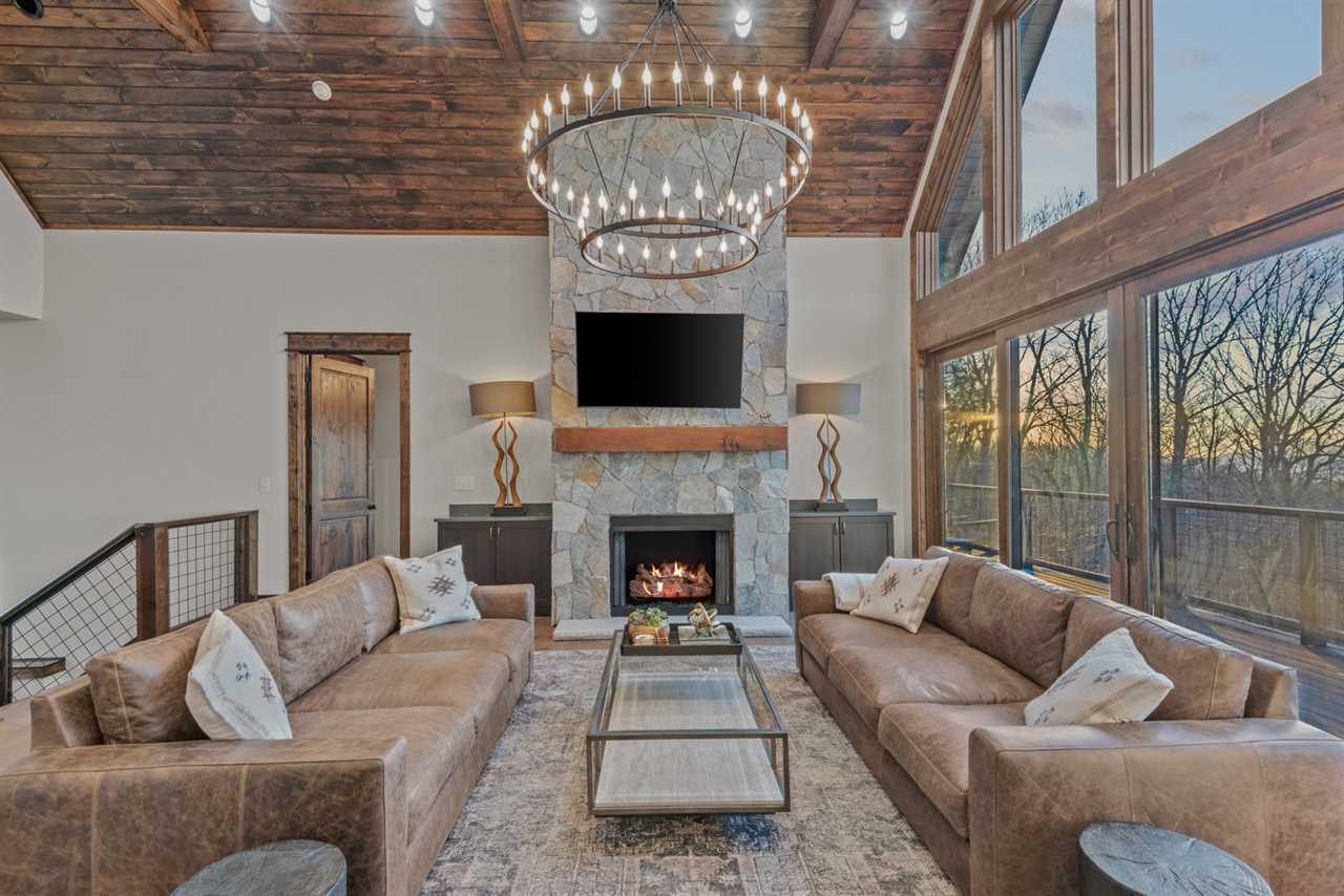 Welcome to The Tipsy Bear, a luxurious retreat in the prestigious Lodges at Eagles Nest. This spacious four-bedroom home comfortably accommodates up to 12 guests, making it the perfect destination for family gatherings or group vacations. Take in breathtaking long-range mountain views from the expansive upper deck or relax in the bubbling hot tub located on the lower deck. Inside, the living room offers a cozy atmosphere with its gas fireplace, ideal for chilly evenings. The fully equipped kitchen is ready for any culinary adventure, featuring modern appliances and all the essentials for preparing delicious meals for your group. On the main level, the primary suite provides a private escape with an en-suite bathroom that includes a soaking tub, a tiled shower, and double granite vanities for ultimate convenience and comfort. On the lower level, the den invites relaxation with a second gas fireplace, a TV, leather seating, and direct access to the deck where the hot tub awaits. A custom-built bunk bed with four twin beds, each with its own light and outlet, offers a fun and cozy space for younger guests. This level also includes a king en-suite with a TV, granite counters, a water closet, and a tiled shower; another king en-suite with a TV and tiled shower; and a fourth queen bedroom. The fourth bedroom is situated near a full bathroom with a tiled shower, shared with guests staying in the bunk area. ​​​​​​​ Outside, gather around the outdoor gas fireplace to enjoy the fresh mountain air and sparkling night skies. Whether you're unwinding by the fire, soaking in the hot tub, or marveling at the stunning scenery, The Tipsy Bear promises a serene and memorable mountain escape. While enjoying your stay at this home, you have access to most amenities inside of Eagles Nest. Amenities available to you include: Great Camp: BBQ Pavilion Amphitheater (location of summer concerts from May to the end of November) The Great Lawn Playground Hiking Trails Ropes Course and Climbing Tower (seasonal) Mini-Golf Course 24/7 General Store North Pavilion: Ball Field Sportsmans Lodge (unlocked portion only) Sports Court (Basketball and Pickleball) Dog Park Walking Trail Sportsman's Grille (Wed-Sun. Hours vary) Fire Pit Woodland Trail System (ATV Trails, Hiking, Biking) Camp (BYO Equipment): Tennis Courts Pickleball Disk Golf Archery Restrooms (Pavilion coming soon!) Vineyard - A quick 2-minute drive from Tipsy Bear Food and Wine served Eagles Nest Winery Day passes are available onsite for $25.00 each HOURS: Thur & Fri 4p-10p. Sat & Sun 1p-7p Please note all visitors on premise at winery must be 16 years or older. This is strictly enforced. Guest do not have access to the locked off portion of the Sportsman's Lodge, the Fitness Center, or the Wine & Cigar Bar. That is for member use only. Additional Notes: - This home is not pet friendly. Thank you for not bringing pets into this home. - All BRMR homes offer well stocked kitchens with all utensils needed to cook meals. There is also a "starter set" of paper products at the house: a roll of toilet paper per bath, a couple garbage bags, a small vial of dishwashing liquid, a few tablets of dishwasher detergent, some laundry pods, a roll of paper towels, hand soap, shampoo, conditioner, body wash, and some makeup remover cloths. There are enough of these items for one night, or maybe two. - Guests are responsible for supplying their own recreational equipment (basketballs, soccer balls, tennis equipment etc.) - The summer concerts are open to all guests however there may be an admission fee for each person and cash bar for food and drinks. - The main roads are plowed in winter, but 4WD or AWD vehicles are required November-March, and chains may also be necessary to access all properties in winter months. - Guests are not allowed to bring their own ATV's. For information about ATV rentals please visit: Off Road Adventures website - All linens and towels provided. - This homeowner monitors the driveway with a security camera. - All Eagles Nest homes have an additional amenity fee in order to maintain the luxurious amenities. - Eagles Nest is an up-and-coming community, with construction currently going on in several of its neighborhoods. Construction noises may be heard 7am-7pm Monday through Saturday. - Please note that all Eagles Nest homes have internet, but some areas of travel may not have cell reception. - Guests returning to this home may receive a discount of 5% to the room rent, not to be combined with other discounts. CANCELLATION POLICY - Bookings canceled 60+ days before arrival will receive a refund of the deposit. Bookings canceled between 31-59 days before arrival will receive a refund of half of the deposit. Bookings canceled within 30 days of arrival are not entitled to a refund unless the reservation dates are rebooked to another guest. All bookings are subject to a $50 cancellation fee. NCREC Broker Name: Blue Ridge Mountain Rentals. NCREC License Number: 29198