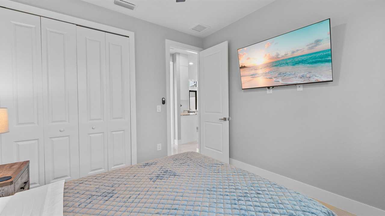 Queen Guest Bedroom: Cozy room featuring a comfortable queen-size bed and streaming TV