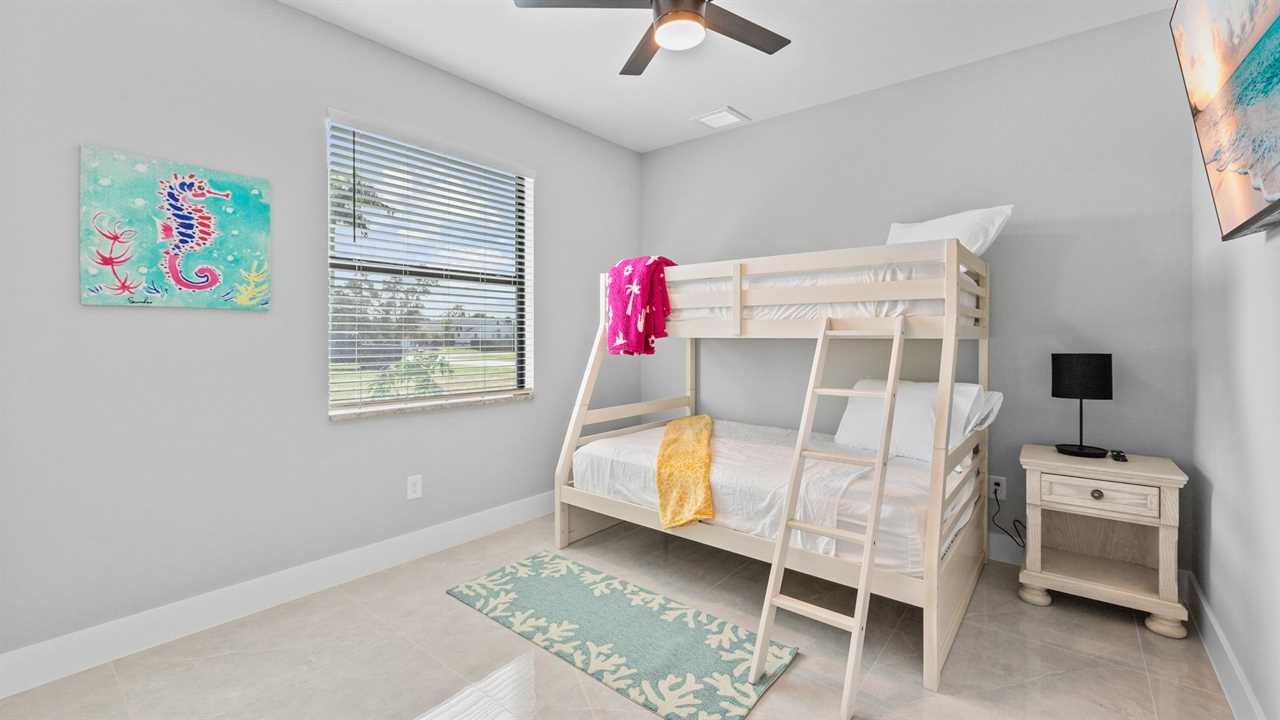 Bunk Bedroom: Fun and functional twin-over-double bunk bed, perfect for kids or extra guests. This room also has a streaming TV for your enjoyment.
