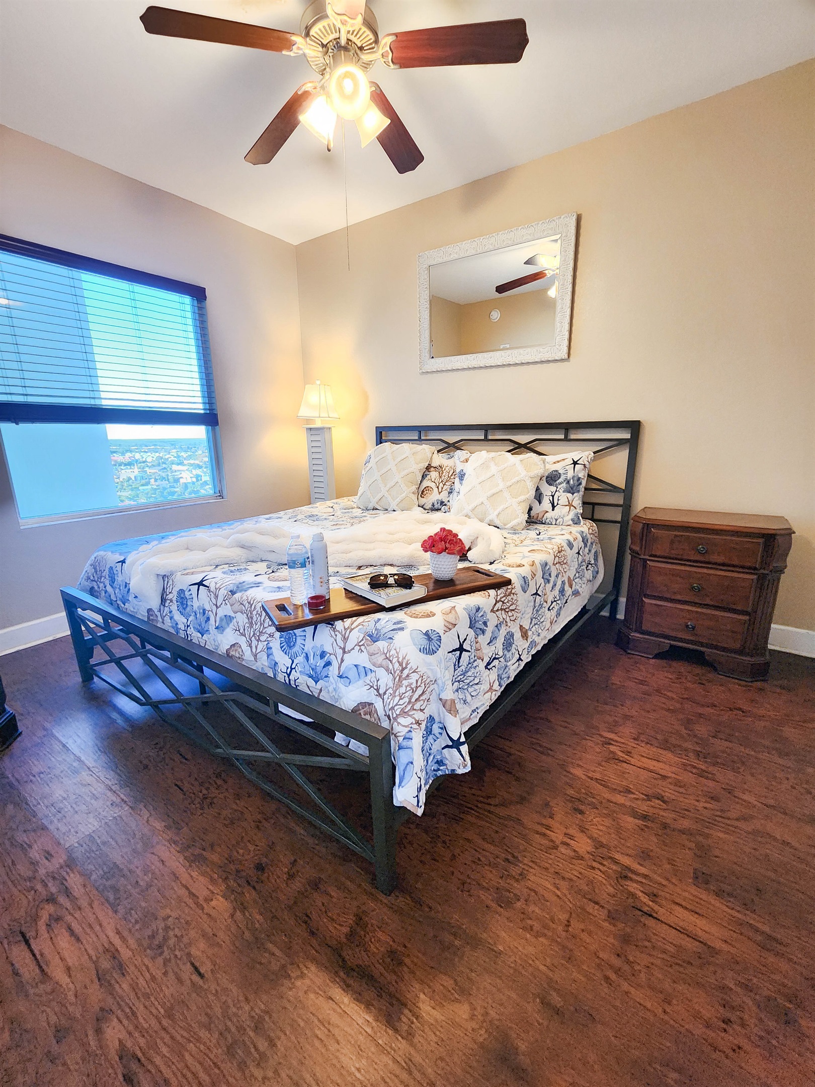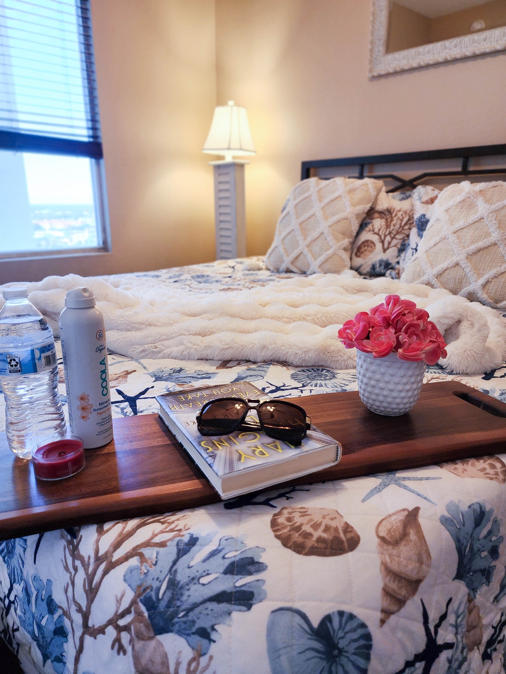 The condo has a king bed in the master and a twin plus trundle. The living room has a sleeper sofa couch. Ideal for extended family of 6.