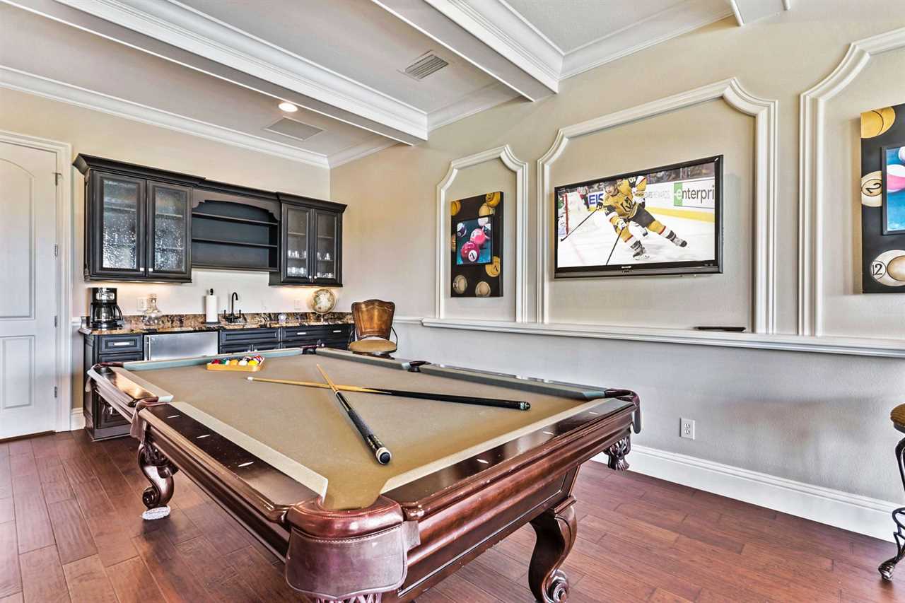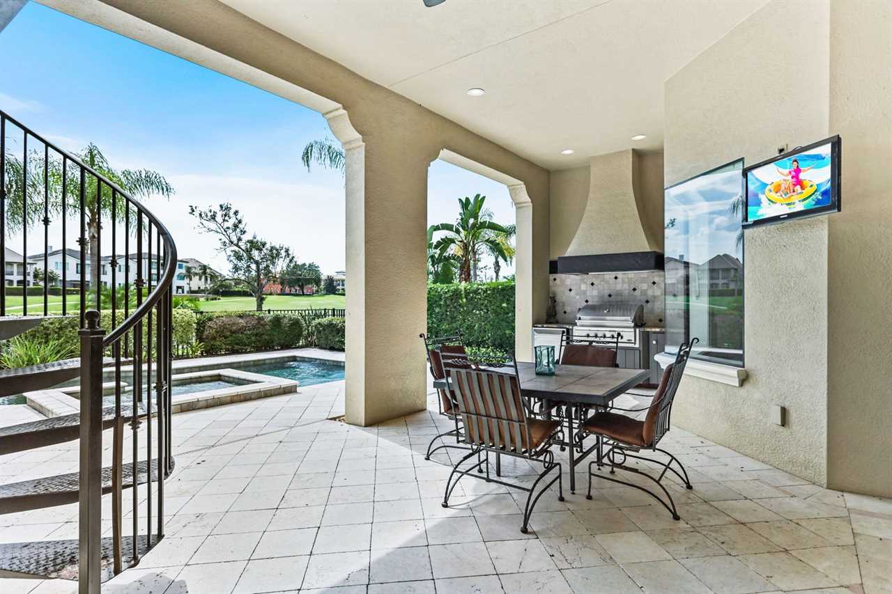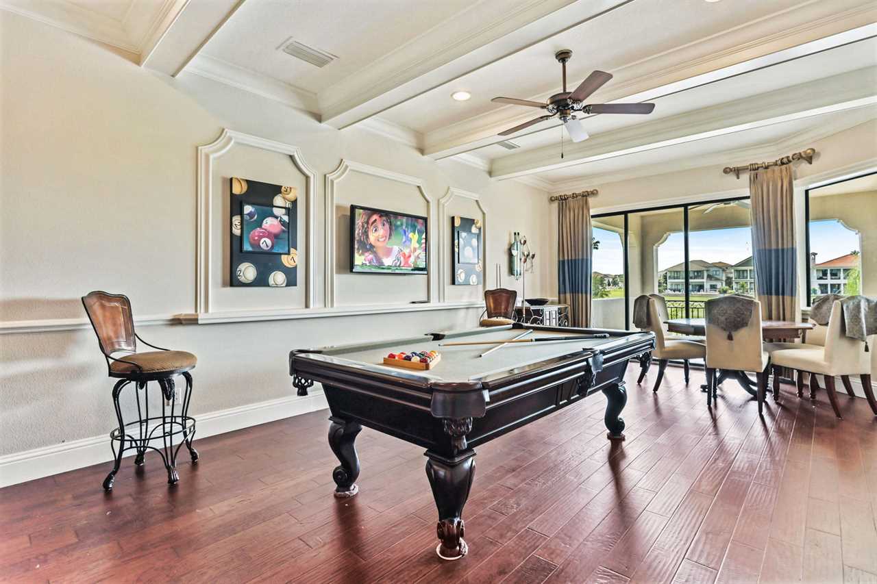 Property Reference #RVH_1330CR Welcome to Muirfield Haven, a luxurious retreat located in Legends Corner within Reunion Resort. This beautifully designed home offers a blend of elegance and comfort, perfect for a memorable vacation. As you step inside, the dining area to your right welcomes you with a table and six chairs, perfect for intimate meals. This area leads through a hall equipped with a wine fridge and a wine bar, making it ideal for entertaining guests. The kitchen is a chef's dream, featuring a long counter with bar seating for four, built-in microwave and oven, and a dining table that seats eight, offering lovely views of the pool and golf course. The spacious living room is designed for relaxation, with two comfortable sofas and a wall-mounted smart TV. To the left of the front door, a step-down leads to a hallway where you'll find the laundry room and a convenient half bath. The main floor houses two exquisite king master suites. The down left king master boasts a wall-mounted TV with cable, a master bathroom with a shower, and a large closet. The down back king master is a luxurious retreat with a wall-mounted smart TV, a large lounge chair, ceiling fan, pool access, and a large closet. The master bathroom features a double vanity, a large corner shower with dual shower heads, and a large tub. The outdoor area is a haven of relaxation, featuring a private pool with a spillover spa, lounge chairs, and a pool fence for safety. The back patio includes a table for four, a built-in grill, and comfortable outdoor furniture. Spiral stairs lead up to the second-floor balcony. Upstairs, the home theater is a movie lover's paradise with a 140” screen and seating for eight on two levels. The upstairs right queen master suite includes a wall-mounted TV, ceiling fan, and a master bathroom with a shower. The upstairs back queen master suite features a wall-mounted TV, balcony access, and a master bathroom with a tub/shower combo. Behind the theater, the adult entertainment area offers endless fun with a pool table, pub stools, poker table, and a wall-mounted smart TV. The upstairs balcony is equipped with outdoor air hockey, providing additional entertainment options. A half bath is conveniently located outside the game area. The upstairs left queen master suite is another haven of comfort, featuring a TV , ceiling fan, and a master bathroom with a shower. Muirfield Haven offers complimentary high-speed wireless internet, ensuring you stay connected throughout your visit. The smoke-free and pet-free environment guarantees a pristine atmosphere for your comfort. Towels and linens are provided, allowing you to travel light and stress-free. The fully equipped kitchen, washer, and dryer add to the convenience, while keyless entry ensures a seamless arrival and departure experience. Experience the ultimate in luxury and comfort at Muirfield Haven, your perfect home away from home in Reunion Resort. Property Summary General Complimentary high-speed wireless internet Smoke-free and pet-free for your comfort Towels and linens are provided Fully equipped kitchen Keyless entry Bedroom/Bed Sizes Bedroom #1 - King (Downstairs) Bedroom #2 - King (Downstairs) Bedroom #3 - Queen (Upstairs) Bedroom #4 - Queen (Upstairs) Bedroom #5 - Queen (Upstairs) Pool Area Private pool Spillover spa Sun loungers Built-in BBQ Outside furniture Theater Room 140” screen 8 seats on two levels Entertainment Area Pool table Pub stools Poker table Wall-mourned smart TV Air hockey (Balcony) Children's Equipment Pack'n'play crib High chair Stroller Laundry Room Full-size washer & dryer Iron & Ironing board Why book this rental? Professionally managed to offer you a superior, personalized service No hassle with key pick-up! Drive straight to your vacation rental! Detailed guest information guide provided within each property Reunion finest rentals at affordable rates. Unlimited Access to Resort Amenities: This property has resort membership, therefore when you book with a Preferred Partner of Reunion Resort, you will have access to all of Reunion's amenities below: Access to 5 acre Water Park with Lazy River Shuttle to Walt Disney World Shuttle Service throughout the resort Access to three signature Golf Courses designed by Arnold Palmer, Tom Watson and Jack Nicklaus* Golf Short Game Practice Area Tennis Centre* Miniature Golf Course* Access to 10 community pools throughout the Resort On-site restaurants and bars. Pickleball**, FootGolf**, Bocce Ball Golf Cart Rental* (Based on availability upon arrival) Access to Seven Eagles Fitness Center Access to self-service Business Center WiFi internet access All Activities are based on availability *Additional fees apply **Fees will apply for rental rackets and balls. FootGolf is available after 3:00 pm on select days Terms And Conditions: Check-in time is 4:00 pm Check-out time is 10:00 am All properties are non-smoking and no pets are allowed An Accidental Damage Protection (ADP) fee will be required to cover any reported accidental damage to this property and its contents There is a one-time departure cleaning fee for all stays Final payment due 45 days prior to your arrival The guest making the reservation must be 25 years of age or older. Bookings made within 30 days of the arrival date must check-in during office hours before the access information is released. The credit/debit card used for payment must be shown along with a valid driving license or passport in the same name as the card. As well as a utility bill with the same address as the card billing address. Pre-Paid cards are not accepted. Vacation rentals may not be used for events or group gatherings that exceed the maximum occupancy. A rental agreement must be signed by the lead guest making the reservation, along with a full list of guest names that will be staying in the property. We use a third party to verify identification and fraud risk, based on the findings we could cancel the reservation. This home has a