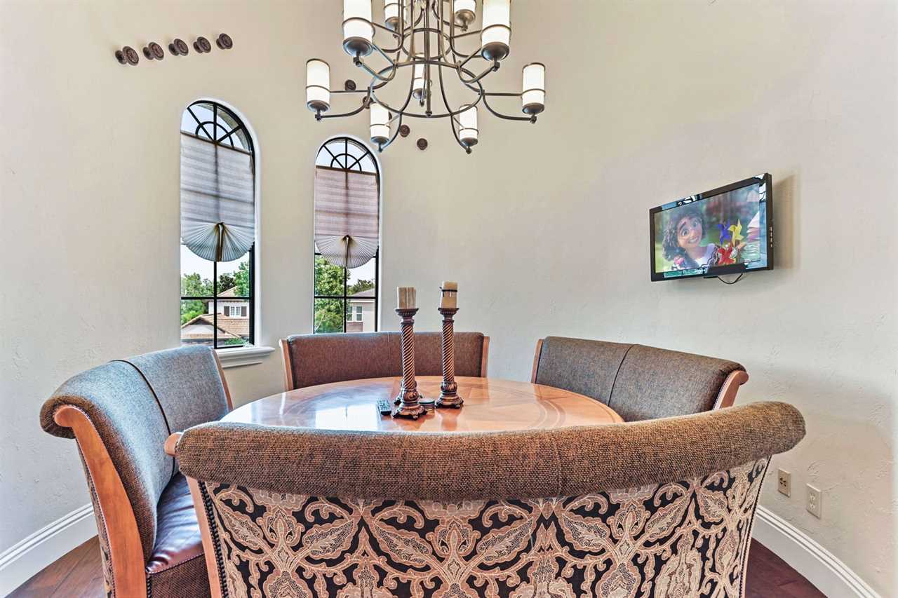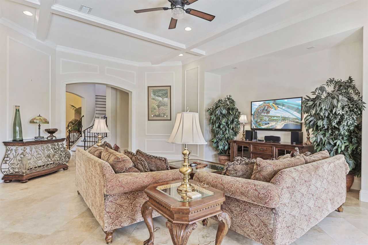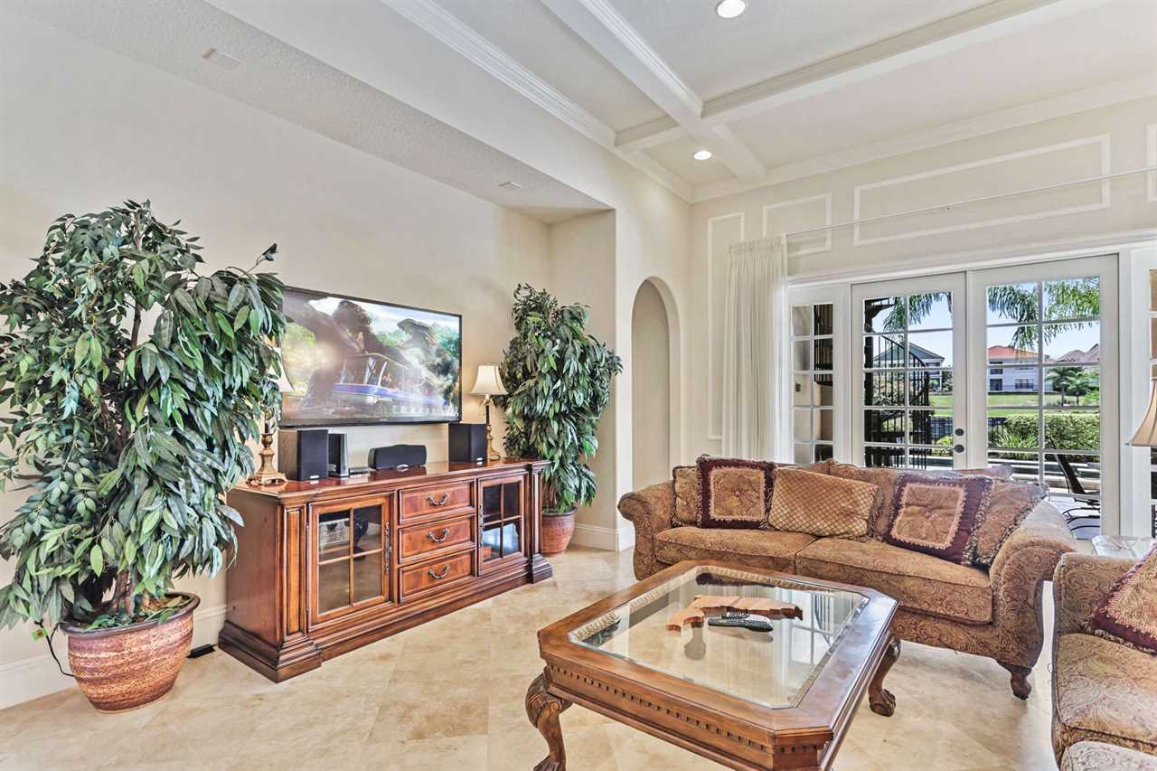 Property Reference #RVH_1330CR Welcome to Muirfield Haven, a luxurious retreat located in Legends Corner within Reunion Resort. This beautifully designed home offers a blend of elegance and comfort, perfect for a memorable vacation. As you step inside, the dining area to your right welcomes you with a table and six chairs, perfect for intimate meals. This area leads through a hall equipped with a wine fridge and a wine bar, making it ideal for entertaining guests. The kitchen is a chef's dream, featuring a long counter with bar seating for four, built-in microwave and oven, and a dining table that seats eight, offering lovely views of the pool and golf course. The spacious living room is designed for relaxation, with two comfortable sofas and a wall-mounted smart TV. To the left of the front door, a step-down leads to a hallway where you'll find the laundry room and a convenient half bath. The main floor houses two exquisite king master suites. The down left king master boasts a wall-mounted TV with cable, a master bathroom with a shower, and a large closet. The down back king master is a luxurious retreat with a wall-mounted smart TV, a large lounge chair, ceiling fan, pool access, and a large closet. The master bathroom features a double vanity, a large corner shower with dual shower heads, and a large tub. The outdoor area is a haven of relaxation, featuring a private pool with a spillover spa, lounge chairs, and a pool fence for safety. The back patio includes a table for four, a built-in grill, and comfortable outdoor furniture. Spiral stairs lead up to the second-floor balcony. Upstairs, the home theater is a movie lover's paradise with a 140” screen and seating for eight on two levels. The upstairs right queen master suite includes a wall-mounted TV, ceiling fan, and a master bathroom with a shower. The upstairs back queen master suite features a wall-mounted TV, balcony access, and a master bathroom with a tub/shower combo. Behind the theater, the adult entertainment area offers endless fun with a pool table, pub stools, poker table, and a wall-mounted smart TV. The upstairs balcony is equipped with outdoor air hockey, providing additional entertainment options. A half bath is conveniently located outside the game area. The upstairs left queen master suite is another haven of comfort, featuring a TV , ceiling fan, and a master bathroom with a shower. Muirfield Haven offers complimentary high-speed wireless internet, ensuring you stay connected throughout your visit. The smoke-free and pet-free environment guarantees a pristine atmosphere for your comfort. Towels and linens are provided, allowing you to travel light and stress-free. The fully equipped kitchen, washer, and dryer add to the convenience, while keyless entry ensures a seamless arrival and departure experience. Experience the ultimate in luxury and comfort at Muirfield Haven, your perfect home away from home in Reunion Resort. Property Summary General Complimentary high-speed wireless internet Smoke-free and pet-free for your comfort Towels and linens are provided Fully equipped kitchen Keyless entry Bedroom/Bed Sizes Bedroom #1 - King (Downstairs) Bedroom #2 - King (Downstairs) Bedroom #3 - Queen (Upstairs) Bedroom #4 - Queen (Upstairs) Bedroom #5 - Queen (Upstairs) Pool Area Private pool Spillover spa Sun loungers Built-in BBQ Outside furniture Theater Room 140” screen 8 seats on two levels Entertainment Area Pool table Pub stools Poker table Wall-mourned smart TV Air hockey (Balcony) Children's Equipment Pack'n'play crib High chair Stroller Laundry Room Full-size washer & dryer Iron & Ironing board Why book this rental? Professionally managed to offer you a superior, personalized service No hassle with key pick-up! Drive straight to your vacation rental! Detailed guest information guide provided within each property Reunion finest rentals at affordable rates. Unlimited Access to Resort Amenities: This property has resort membership, therefore when you book with a Preferred Partner of Reunion Resort, you will have access to all of Reunion's amenities below: Access to 5 acre Water Park with Lazy River Shuttle to Walt Disney World Shuttle Service throughout the resort Access to three signature Golf Courses designed by Arnold Palmer, Tom Watson and Jack Nicklaus* Golf Short Game Practice Area Tennis Centre* Miniature Golf Course* Access to 10 community pools throughout the Resort On-site restaurants and bars. Pickleball**, FootGolf**, Bocce Ball Golf Cart Rental* (Based on availability upon arrival) Access to Seven Eagles Fitness Center Access to self-service Business Center WiFi internet access All Activities are based on availability *Additional fees apply **Fees will apply for rental rackets and balls. FootGolf is available after 3:00 pm on select days Terms And Conditions: Check-in time is 4:00 pm Check-out time is 10:00 am All properties are non-smoking and no pets are allowed An Accidental Damage Protection (ADP) fee will be required to cover any reported accidental damage to this property and its contents There is a one-time departure cleaning fee for all stays Final payment due 45 days prior to your arrival The guest making the reservation must be 25 years of age or older. Bookings made within 30 days of the arrival date must check-in during office hours before the access information is released. The credit/debit card used for payment must be shown along with a valid driving license or passport in the same name as the card. As well as a utility bill with the same address as the card billing address. Pre-Paid cards are not accepted. Vacation rentals may not be used for events or group gatherings that exceed the maximum occupancy. A rental agreement must be signed by the lead guest making the reservation, along with a full list of guest names that will be staying in the property. We use a third party to verify identification and fraud risk, based on the findings we could cancel the reservation. This home has a