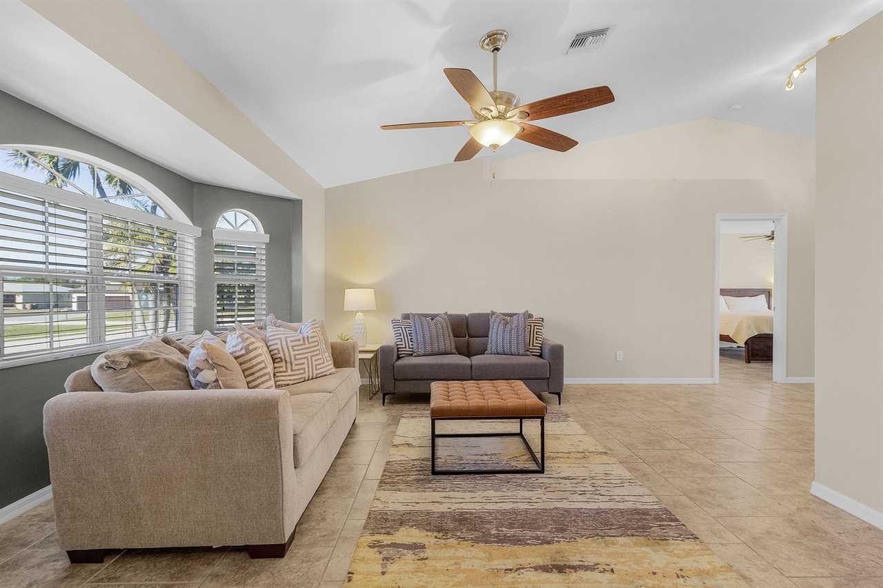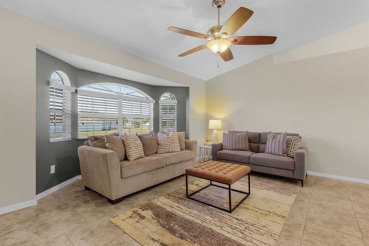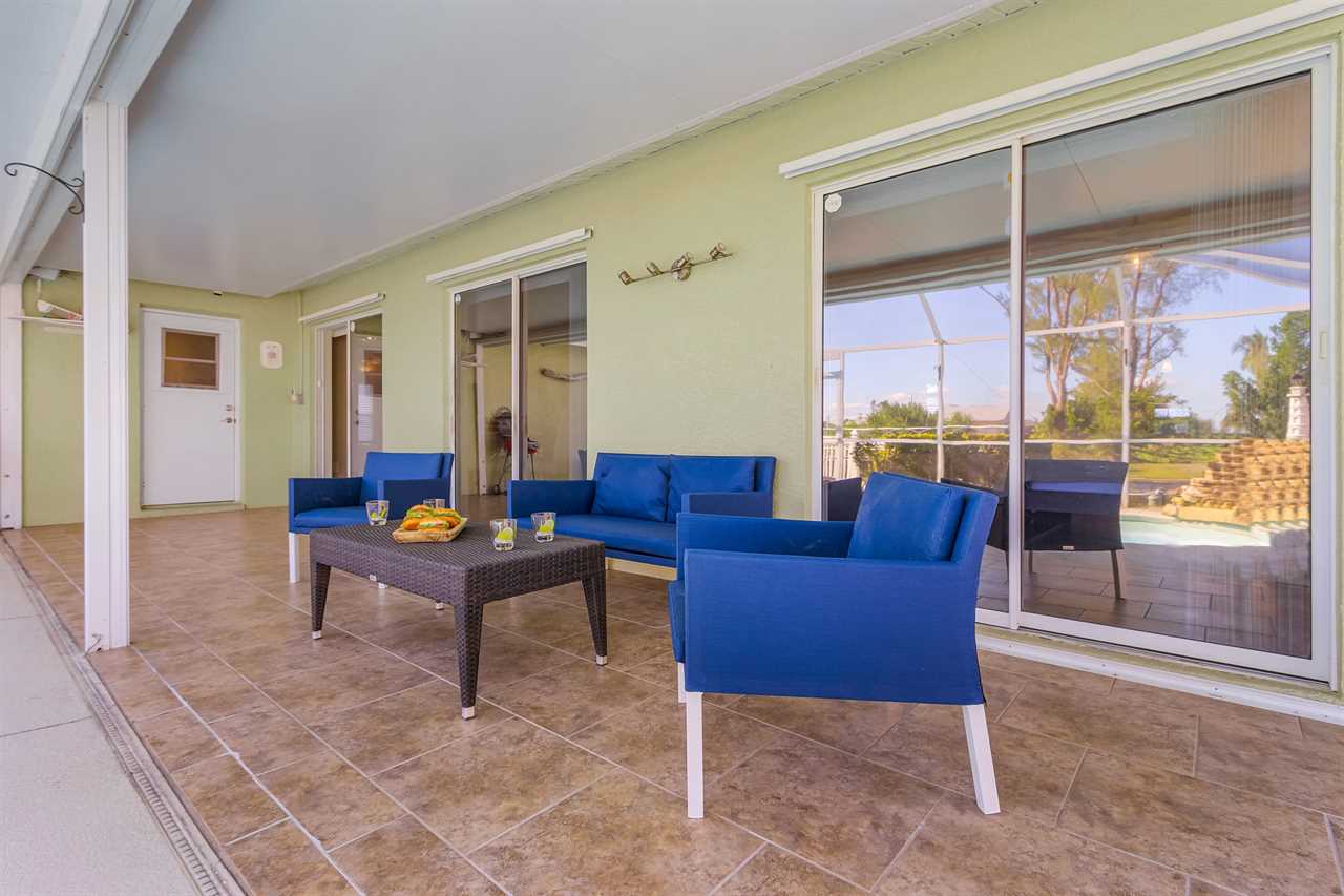 Spacious Lanai: Step into the spacious lanai, where you'll find ample room to curl up with a good book or engage in heartfelt conversations with friends and family. Adorned with comfortable loungers and cozy patio furniture, this inviting space is perfect for relaxing or gathering together. As the sun sets, catch the breathtaking view of vibrant colors dancing off the water, all while enjoying the gentle warmth of the evening breeze.