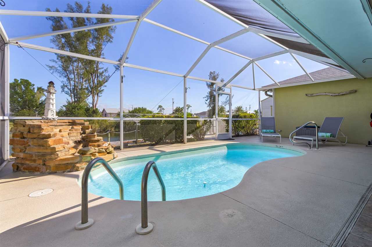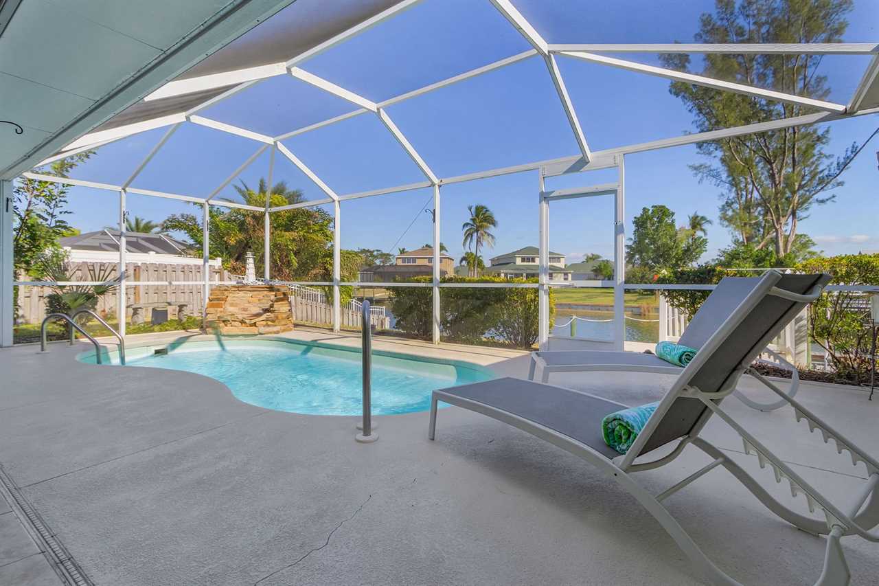 Large Solar Pool: Dive into relaxation at the large swimming pool, lounging, or soaking up the Florida sun, this inviting space offers stunning views overlooking the serene canal.