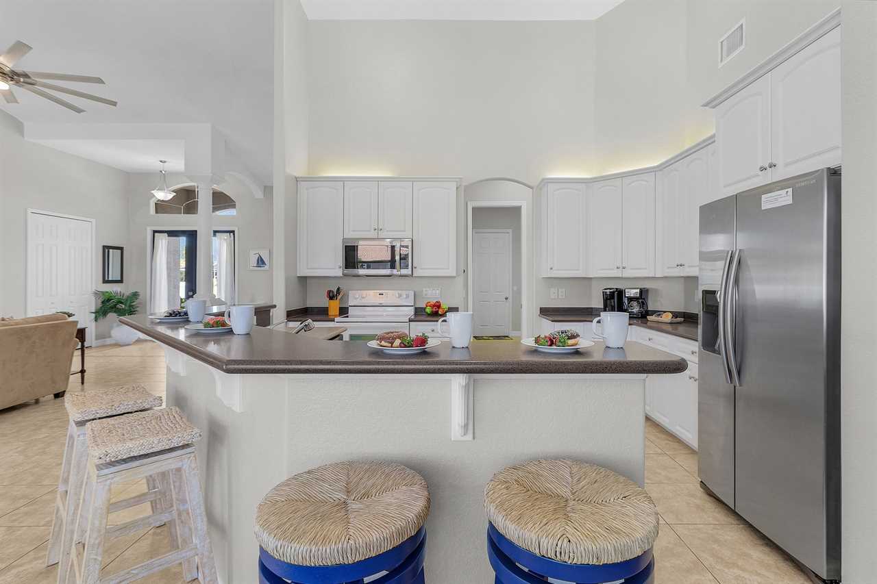 Open Floor Plan: As you step inside you will be greeted by an abundance of natural light that pours in through the expansive windows, illuminating the open floor plan. Cozy seating arrangements and modern decor warp you in comfort and set the relaxes tone for your vacation. At the center of it all, the sleek and modern kitchen serves as the perfect hub for family gatherings and impromptu dinner parties. Whether you're whipping up a quick snack or preparing a multi-course meal, the central location allows for seamless flow between cooking, dining, and socializing. And when it's time to expand your living space, sliders in both the living area and kitchen effortlessly connect you to your outdoor oasis.