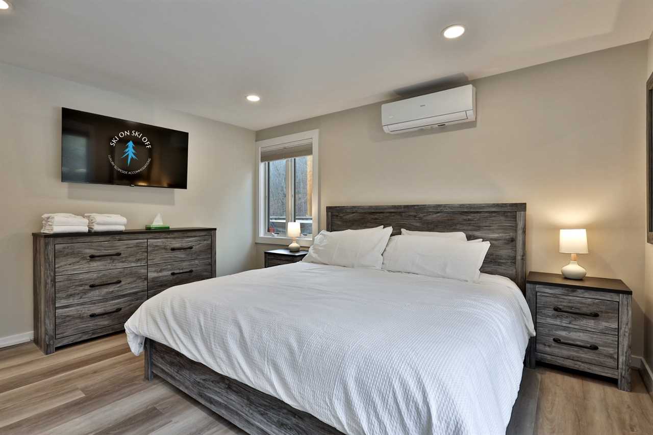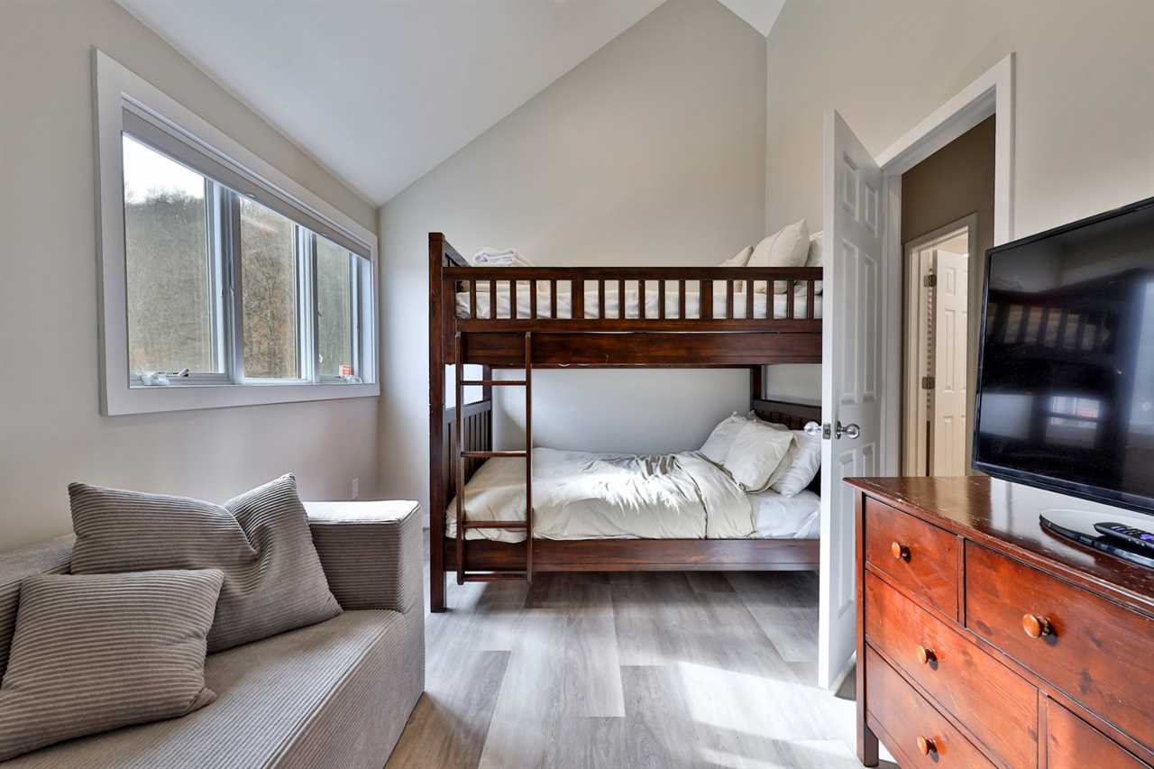 Trailside Six: Ski-On/Off Condo for 8 with Private Hot Tub & Sauna This is the slopeside ski vacation you have been trying to find. Trailside Six is a true ski-on, ski-off three-bedroom condo that sleeps eight, located directly on Killington's Great Eastern trail. Forget the parking lots and shuttle buses. Your stay includes boot and glove dryers in the entry, a real wood-burning stove for an authentic "après-ski" feel, and the two key amenities skiers search for: a private hot tub on the deck and a private indoor sauna. Cook Together Eat Better The main level features an open-plan great room that connects the living, dining, and kitchen areas. The kitchen is fully equipped for making real meals, so you can gather the group for a big breakfast before hitting the slopes or a relaxing dinner in front of the fire. The main floor also includes a Queen bedroom and a fully renovated bathroom with a walk-in rainfall shower. Rest For The Whole Group Upstairs, you will find two more bedrooms and a second full bathroom with a double vanity, ensuring there is no wait time in the morning. One bedroom features a full-over-full bunk bed and its own TV, making it a perfect kids' space. The primary King bedroom includes an additional sofa bed, offering flexible sleeping arrangements for your group. This property is professionally managed by a local team, ensuring your stay is seamless. All-wheel drive or 4-wheel drive with snow tires is recommended for winter access. Dogs are welcome with a pet fee. The hot tub is available year-round (an optional setup fee applies outside of peak ski season). Guests receive exclusive ski and snowboard rental discounts with local Killington partners, plus limited lift ticket deals based on availability. • Ski On/Off: This home is located on the Great Eastern ski trail and offers ski on/off access when the trail is open. Early/late season trail conditions are weather-dependent, and neither the host nor property manager is responsible for these conditions. Reservations cannot be canceled due to weather or lack of snow. For up-to-date trail information, visit the Killington Resort website before booking. Your dates may fall under early/late season rates. • Private Shuttle Services: In partnership with Ski On Ski Off Killington, we provide private shuttle services to the ski lifts and town for an additional fee. Contact us for details. • Rental Agreement: Guests must e-sign and return our written rental agreement. • Hot Tub: The hot tub is included for peak ski season weekends (late December to mid-March). For all other periods, there is an optional $195 setup fee. You understand that use of the hot tub is at your own risk and that special risks may be involved in using the hot tub. You accept full responsibility for any bodily injury arising from use of the hot tub, and hold owner and property manager harmless. • Guest Occupancy: Do not exceed the agreed guest occupancy. Over-occupancy will result in immediate eviction and fines. • Minimum Rental Age: Guests must be 25 years or older to rent this property. • Shoes: Please do not wear shoes inside the house. • Check-In/Out: Smart lock door codes will be provided for contactless check-in and check-out. While we offer some flexibility with check-in and check-out times depending on other bookings, guaranteed early check-in or late check-out may be available for an additional fee. • Smoking Policy: The entire home is non-smoking, including e-cigarettes. Smoking is only permitted outdoors. A $750 fine will be charged for smoking inside the house. • Cameras: For safety and security, there are exterior cameras on the property capable of recording at all times. There are no cameras in any living areas. • Quiet Hours: Quiet hours are from 10 PM to 8 AM. The property may use Minut, a smart home device that monitors noise levels to address disturbances without disrupting your stay. Minut is 100% privacy compliant and required for this property. Please reach out if you have questions. • Fireworks: Fireworks are not permitted at this property. • Parties/Events: Parties and events are not allowed. • Pets: This property is pet friendly with the payment of our non-refundable pet fee per dog. • Winter Weather: Winter weather can be unpredictable. We do not offer refunds due to weather or ski trail conditions and recommend purchasing travel insurance for unforeseen events. All-wheel drive and winter tires are strongly recommended. • Please be advised that this property utilizes a ladder to access the bunk beds. By renting this property, you are agreeing to hold the owner and property manager harmless for any injury or death that is resulting from the use of the ladder. • Limitation of Liability: The owner and their rental agent shall not be held liable for any injuries or damages to the tenant, the tenant's family, or guests that occur during the tenant's occupancy of the property. The Tenant agrees to indemnify and hold the property manager and their representatives harmless from any and all claims, liabilities, or legal actions arising from the Tenant's use or occupancy of the premises.