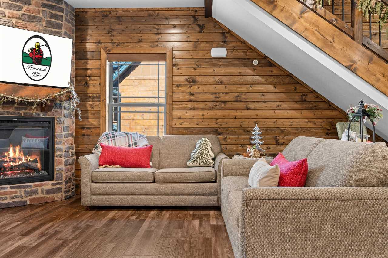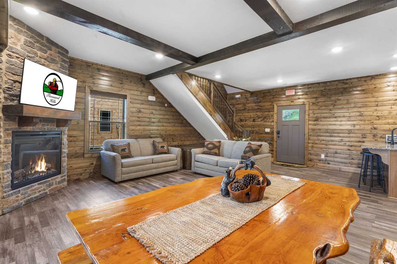 You'll be perfectly positioned just 5 miles from Thunder Ridge Nature Arena, Top of the Rock, and world-class golf courses ⛳ — with Branson's top shows 🎭, restaurants 🍽️, unique shopping 🛍️, and Table Rock Lake 🚤 only a short drive away. Back at the resort, enjoy exclusive amenities you won't find anywhere else: the area's largest outdoor pool with lounge seating, a year-round indoor pool, lively pickleball 🎾 and basketball 🏀 courts, and a tranquil catch-and-release fishing pond 🎣. This isn't just a cabin stay — it's a full vacation experience designed to delight every guest, every time.