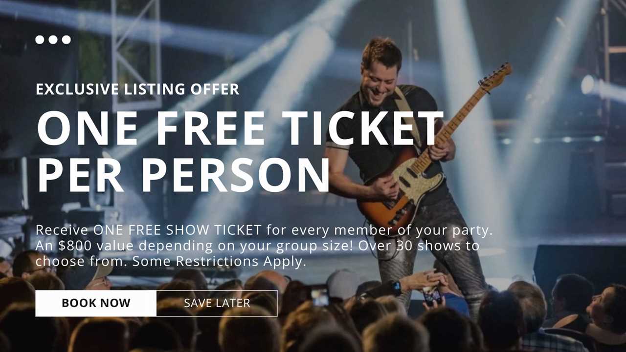✦ ✦ Free tickets to one of over 30 Branson shows — ready for pickup on arrival or sent digitally