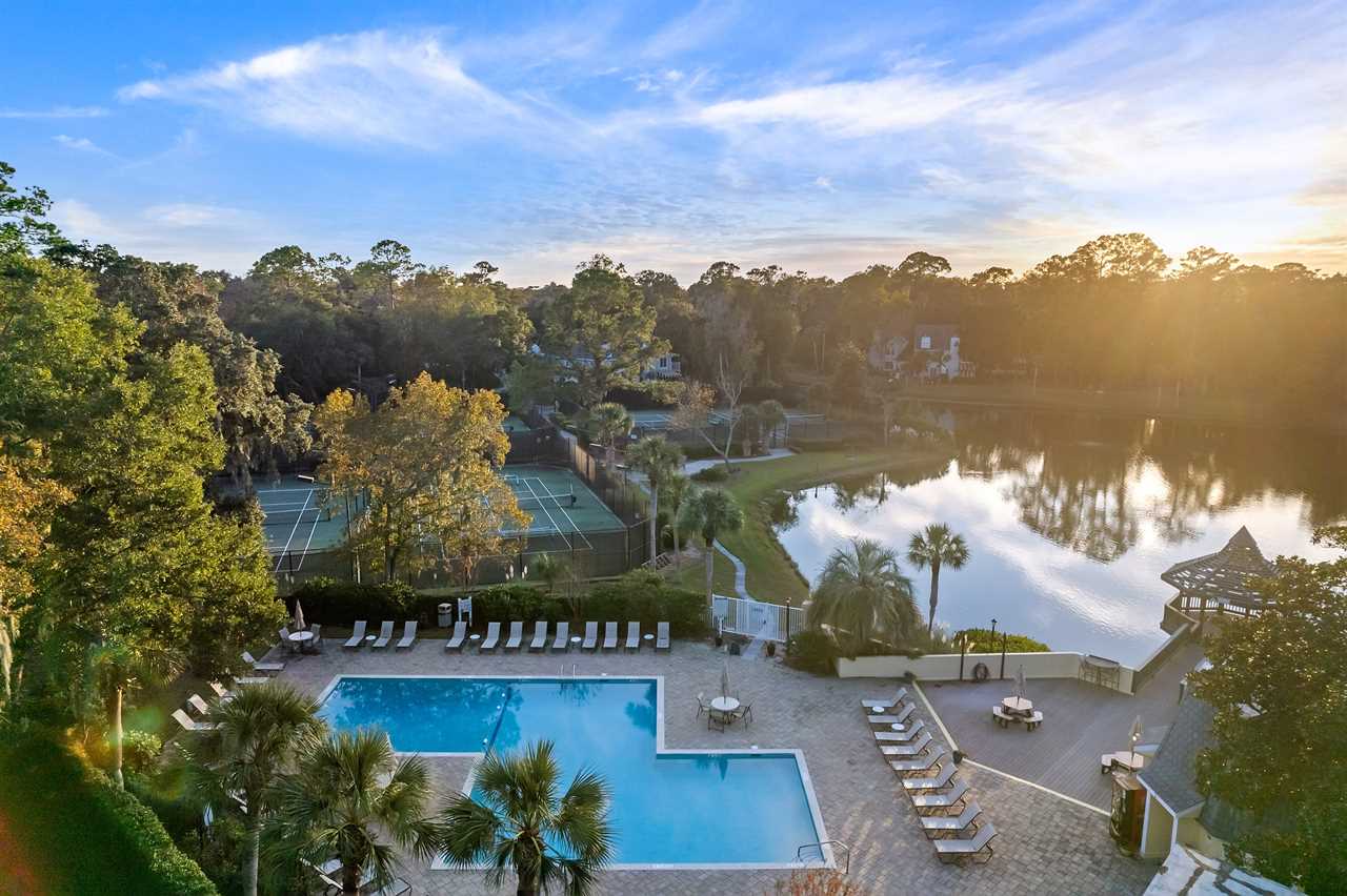 Step onto the private porch to fire up the electric grill amidst tranquil garden views. Whether you prefer lounging by the pool, enjoying a match on the lighted tennis courts, or exploring Island's beaches and trails, this villa promises relaxation and adventure in equal measure.