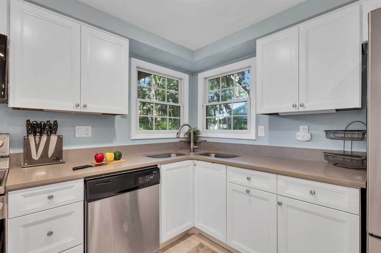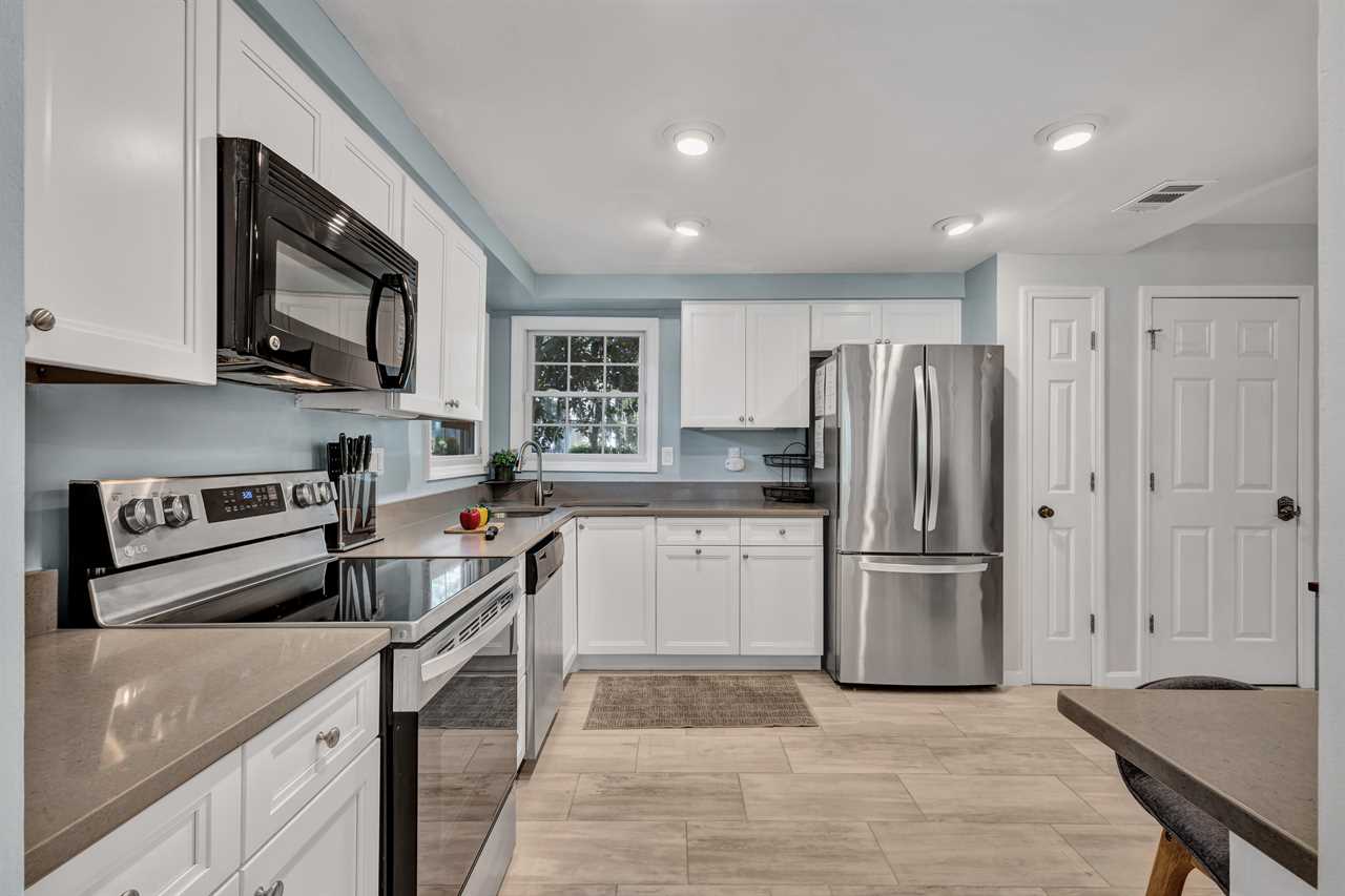 ✓ Fully stocked kitchen with modern stainless appliances and ample prep space.