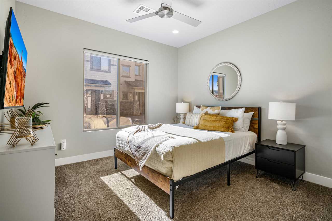 This luxurious 7-bedroom, 6-bathroom gem sleeps up to 20 guests, making it ideal for large groups, families, or friends. Whether you're relaxing by your very own private pool (with plenty of pool toys for the little ones) or unwinding in the private hot tub, Desert Sky has everything you need for the ultimate retreat. Gather around the outdoor seating and enjoy meals al fresco while soaking in the stunning desert views. Looking for some fun? Challenge your loved ones to a game of cornhole, or dive into a selection of board games perfect for any age. When you're ready to relax, cozy up and watch a movie on one of the many Smart TVs provided in the home. Whether you're splashing around in the resort's amazing lazy river, playing pickleball on the community courts, or enjoying a peaceful evening on your private balcony, Desert Sky promises an unforgettable vacation experience. Zion Village Resort is the perfect home base for exploring all that Southern Utah has to offer. Located just miles from Zion National Park, this stunning resort offers everything you need for relaxation and recreation. Book your stay at Desert Sky today and create lasting memories with your loved ones in the heart of Zion Village Resort!