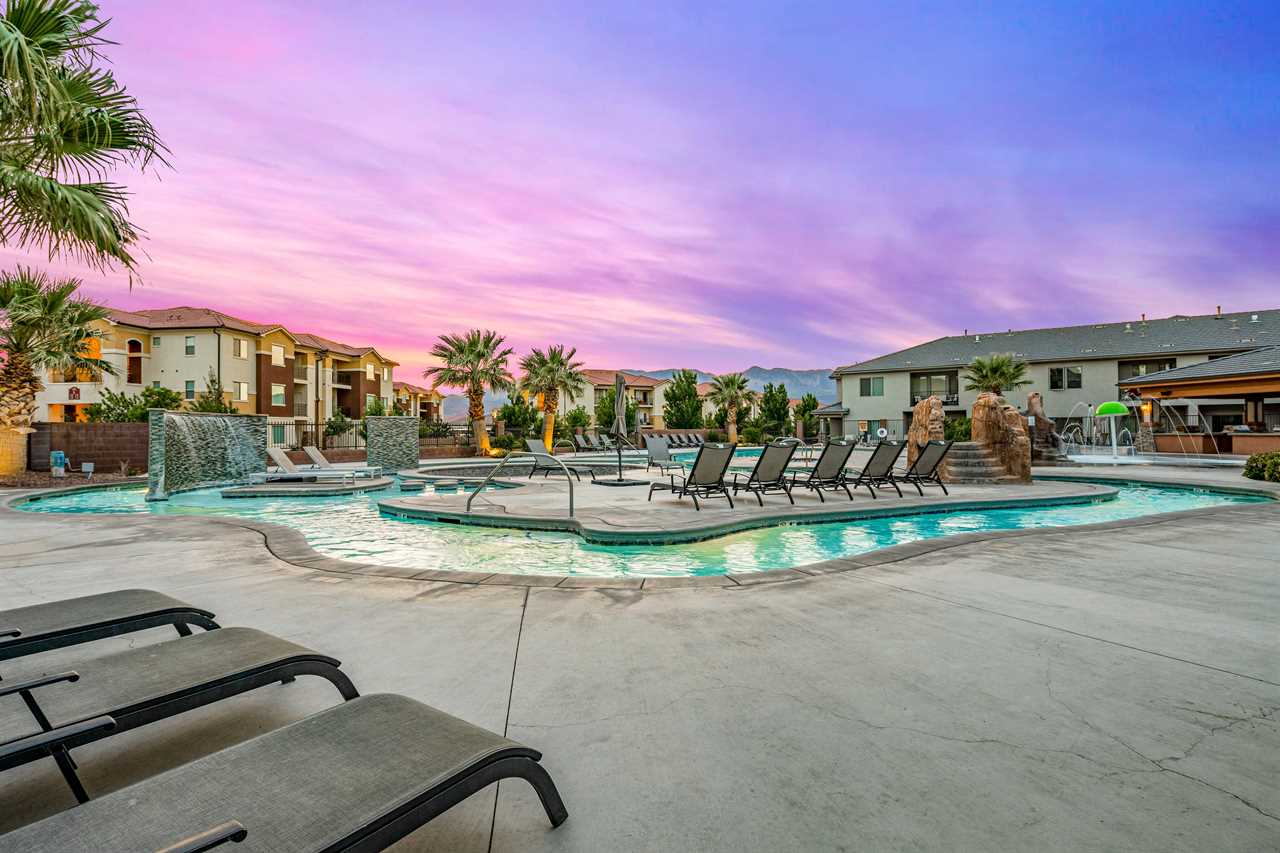 Desert Sky is the perfect desert oasis for your next unforgettable vacation! Located in the sought-after Zion Village Resort, this home is packed with fun and relaxation for the whole family. Jump into endless adventure with access to a year-round heated lazy river, a thrilling splash pad, a hot tub, and sparkling pools, along with pickleball courts for some friendly competition!