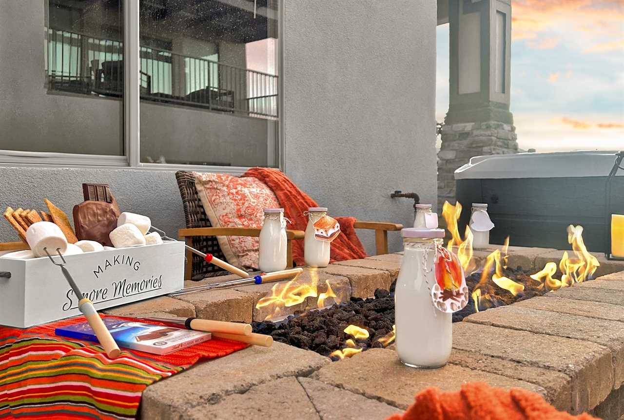 You can gather on the comfy couch for a movie night, catch a game, and spend the evening outside relaxing in the hot tub after a day of adventures or sitting by the fire table.