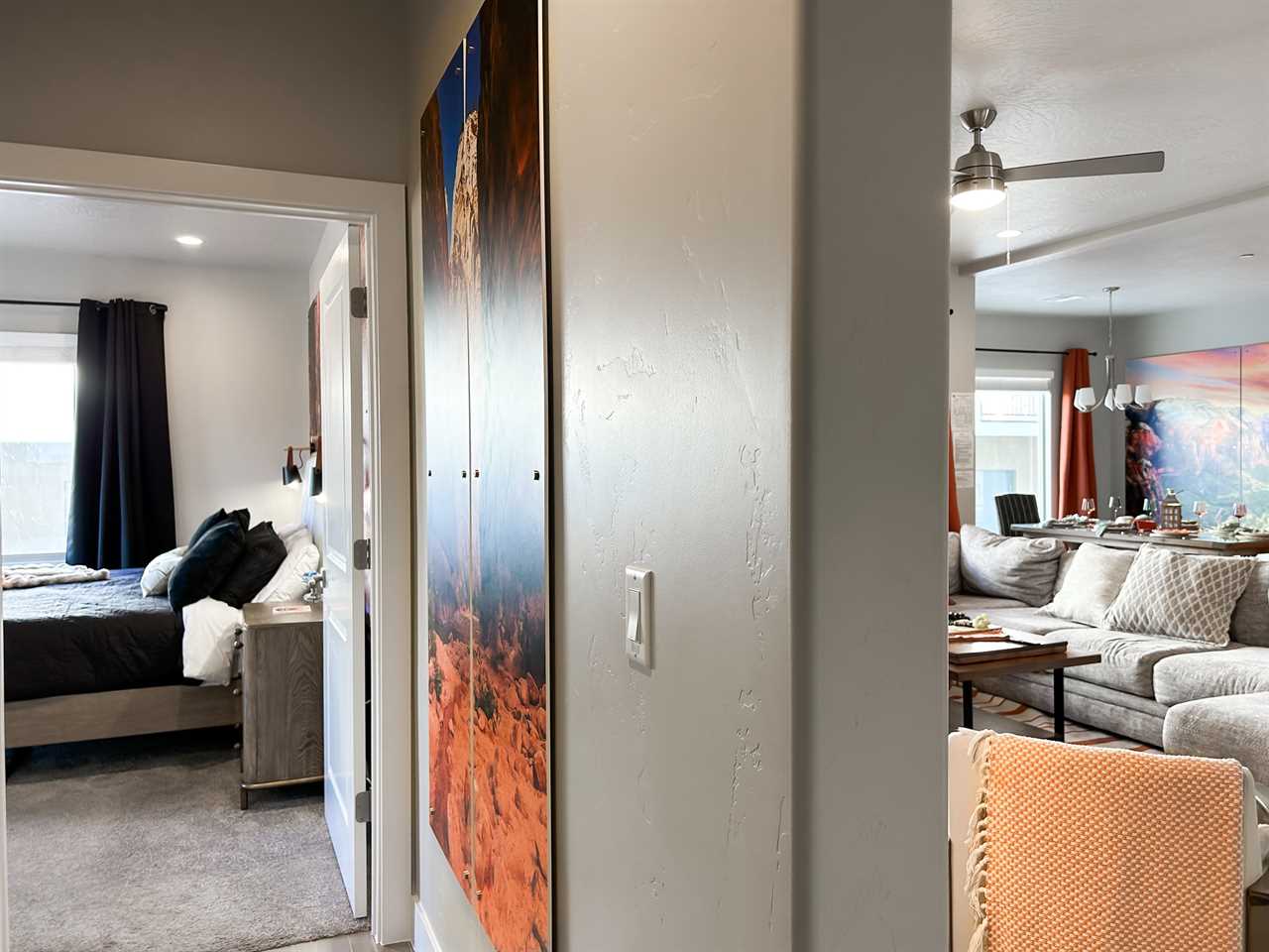 The second downstairs bedroom, “Zion Subway”, is right after the main entrance and, like the other bedrooms, it has a stunning scenic headboard and a Smart TV. This bedroom has private access to the hallway bathroom.