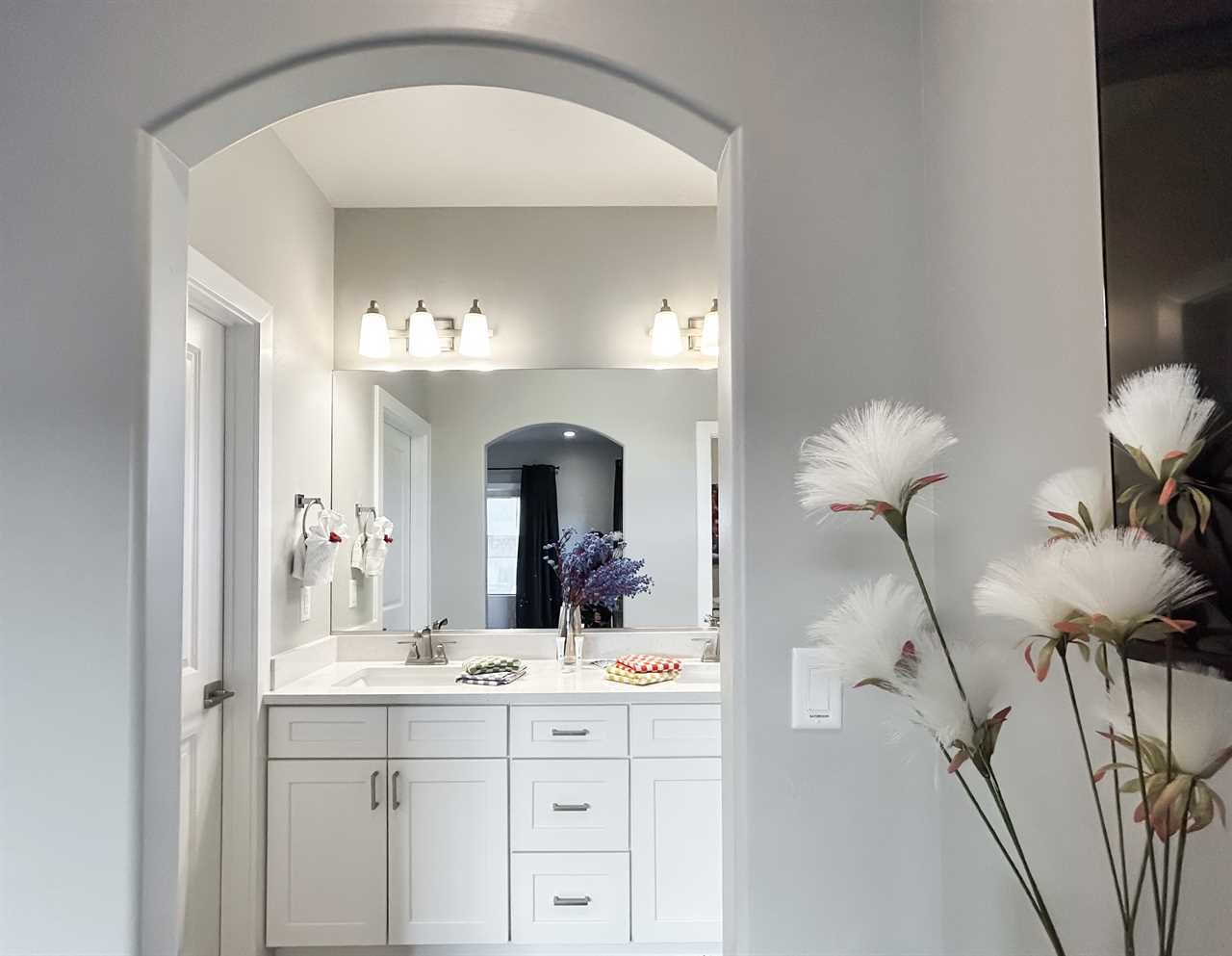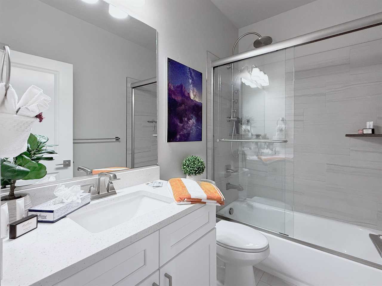• Private vanity, shared Jack and Jill bathroom with shower/tub combo and shower spa system.