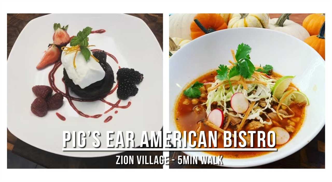 • Pig's Ear American Bistro - 5min walk from Zion Village