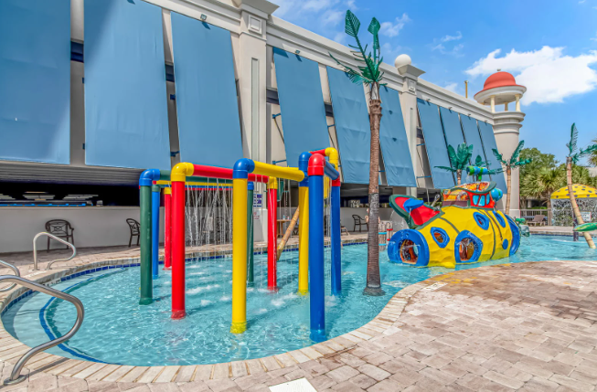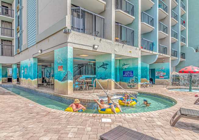 While our guests have access to the pools at the Mariner and the oceanfront pools at the Schooner. They do not have access to the Tiki Bar, fitness center, laundry facilities, waterslides, arcade, or gift shop.