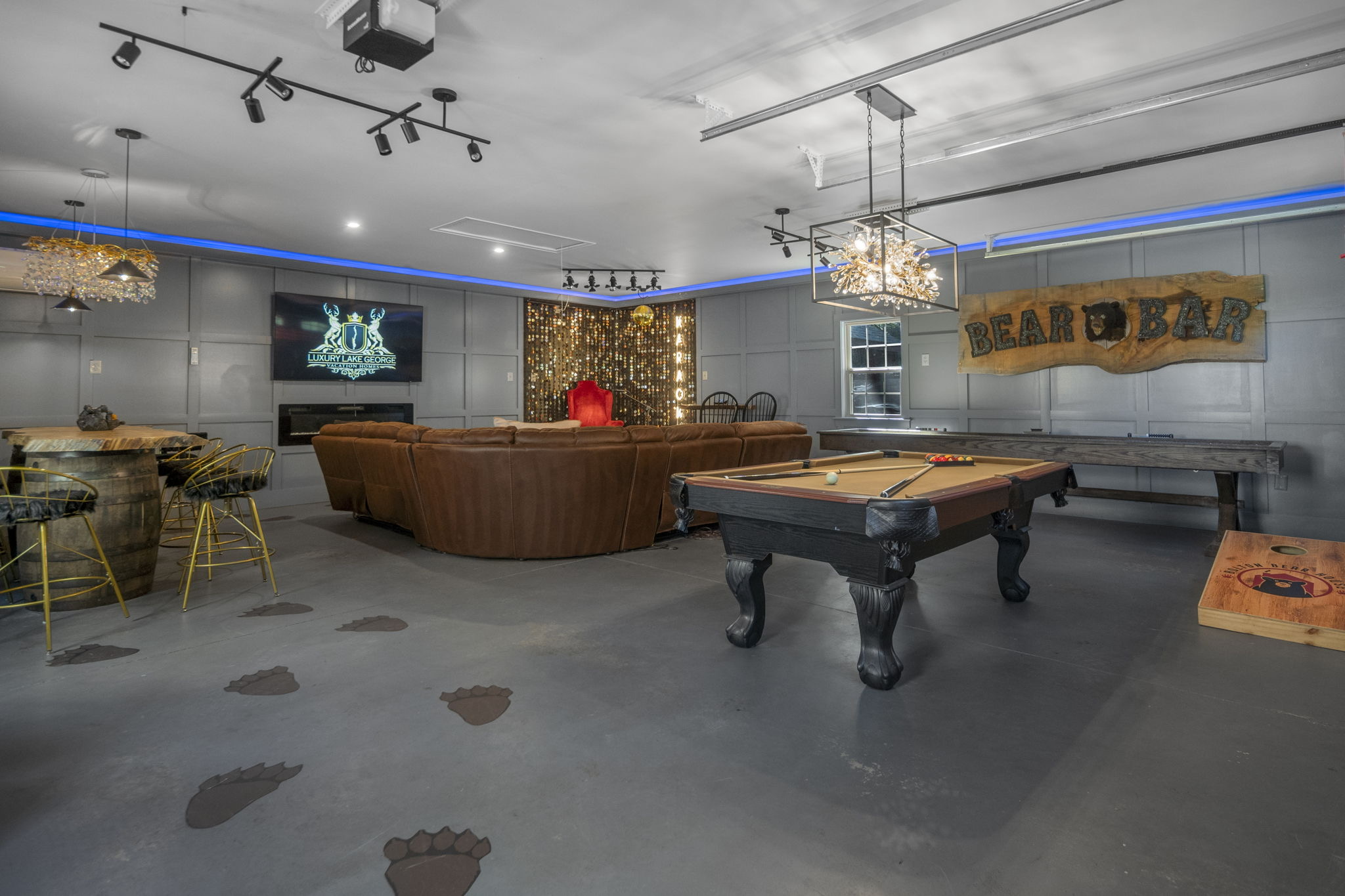 ⭑ Game room with vintage arcade games, billiards, darts, and shuffleboard