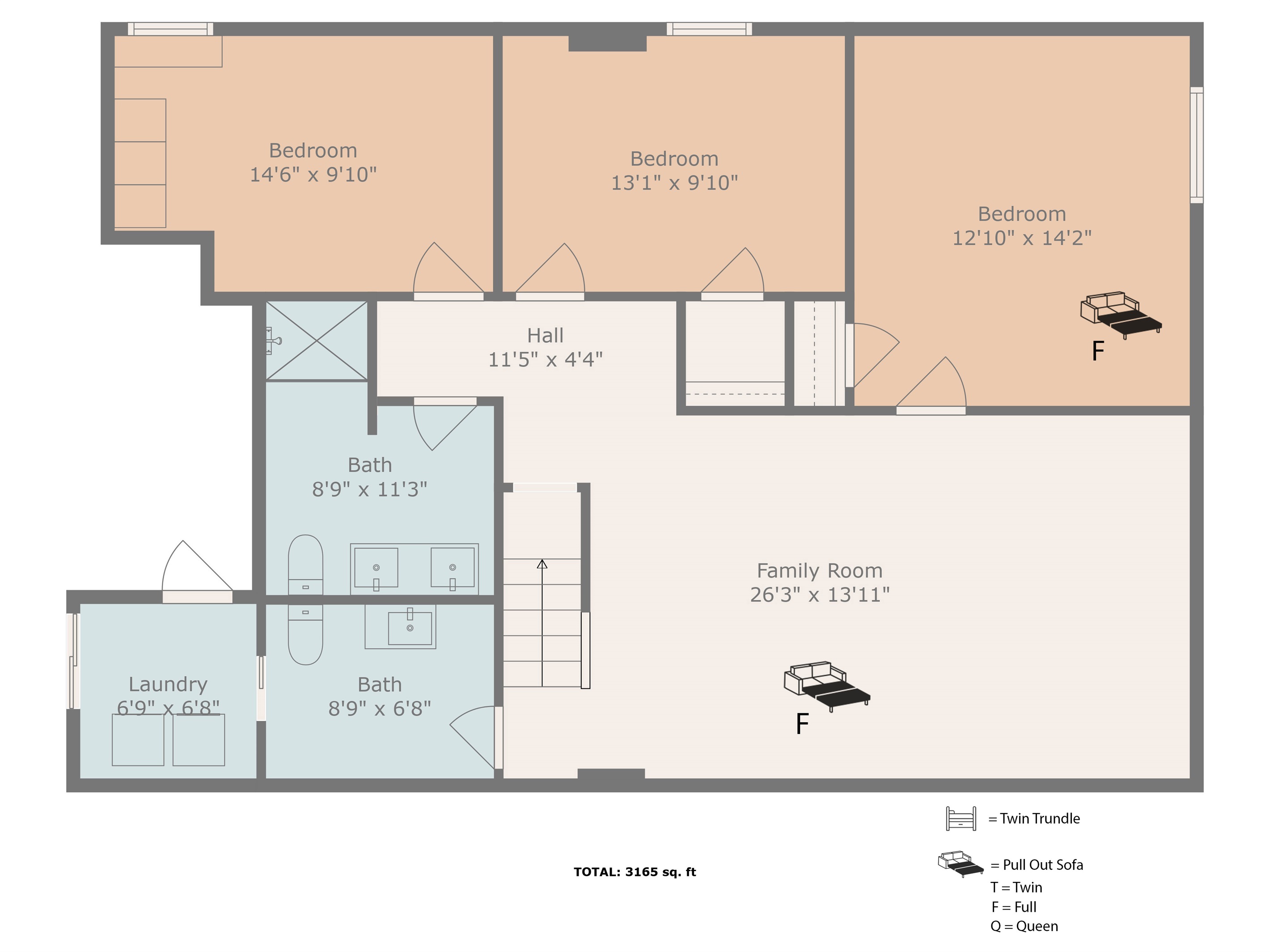 ✧ Bedroom #6 (Full/Twin Bunkbed, Full Pullout Sofa)