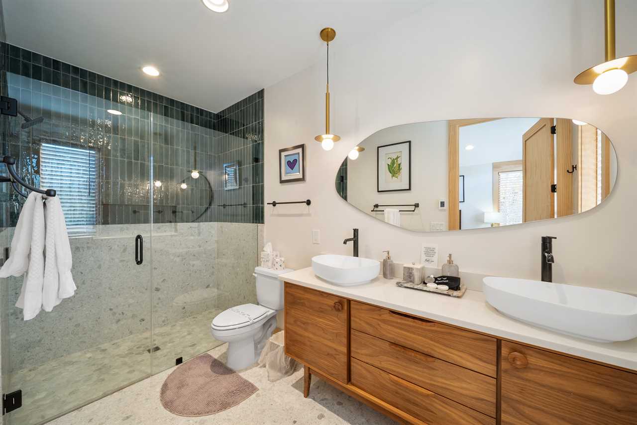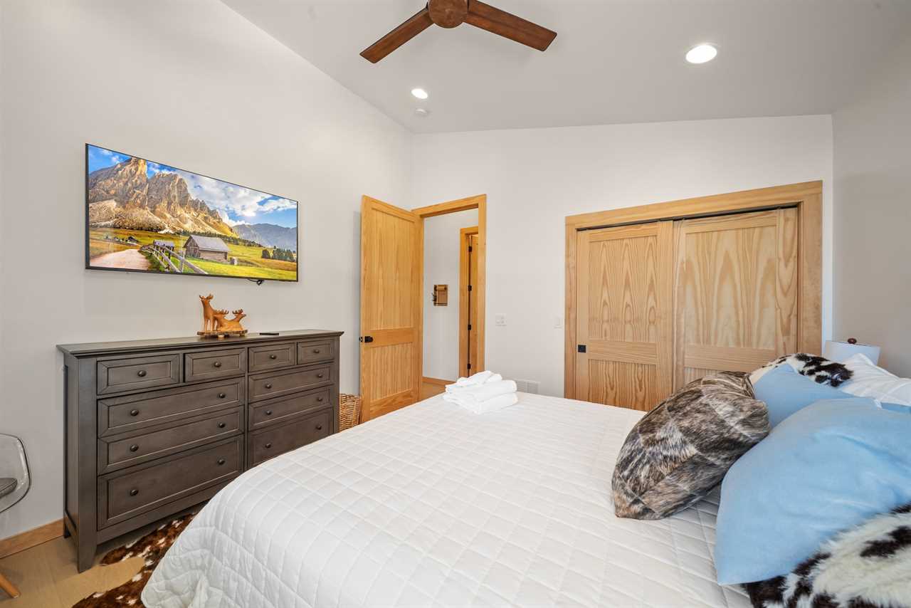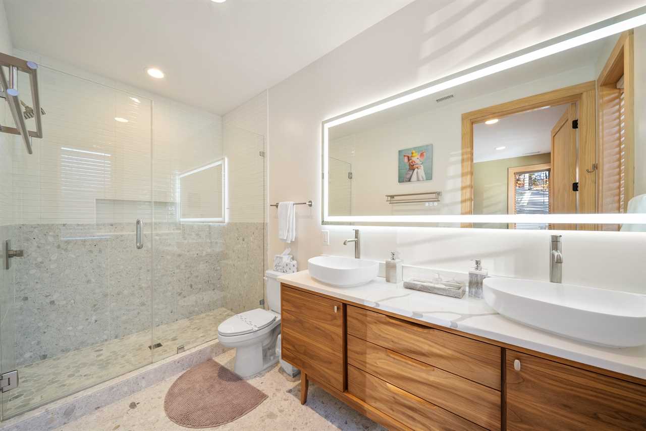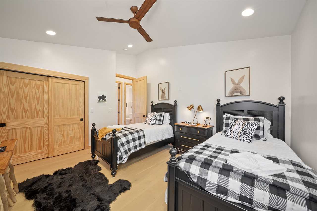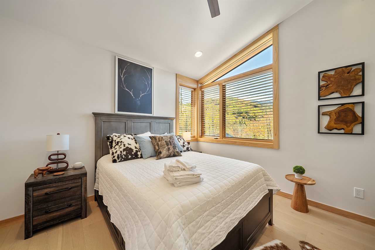 Retreat to plush bedrooms, each styled for comfort and serenity, with elegant finishes and luxurious bedding. The bathrooms feature exquisite tile details and spa-inspired amenities, offering a tranquil escape after a day of mountain adventures.