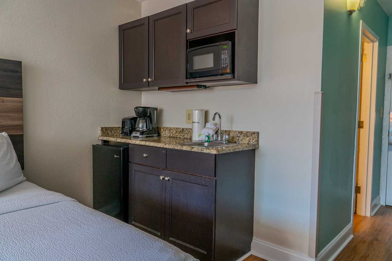 The kitchenette area is ideal for preparing a quick snack or light meal before heading to the beach. Equipped with a mini-fridge, microwave, small sink, and ample counter space, you'll have everything you need to keep your stay effortless. If dining out is more your style, you're in luck! The Landmark is surrounded by a variety of great restaurants, many of which are within walking or short driving distance. Plus, popular delivery services like Uber Eats and DoorDash make it easy to enjoy a meal from the comfort of your condo.