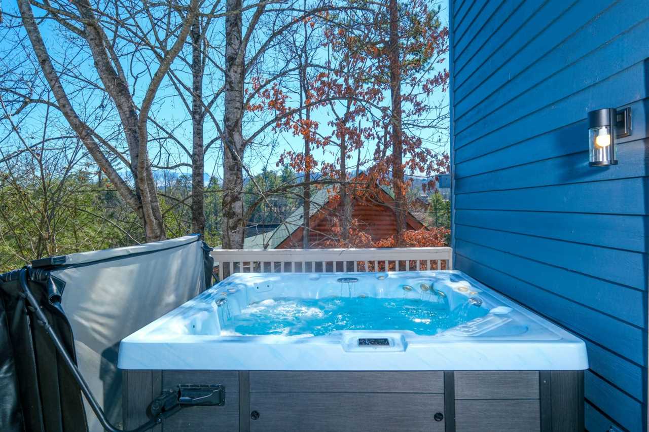 • Large hot tub with multiple jets (visible from nearby cabins)