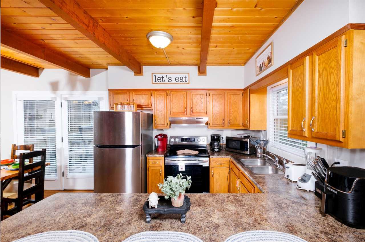 Cook meals, prepare snacks, and brew your morning coffee in the fully equipped kitchen. Whether you're feeding a crowd or just whipping up quick bites, this kitchen is stocked with essentials.