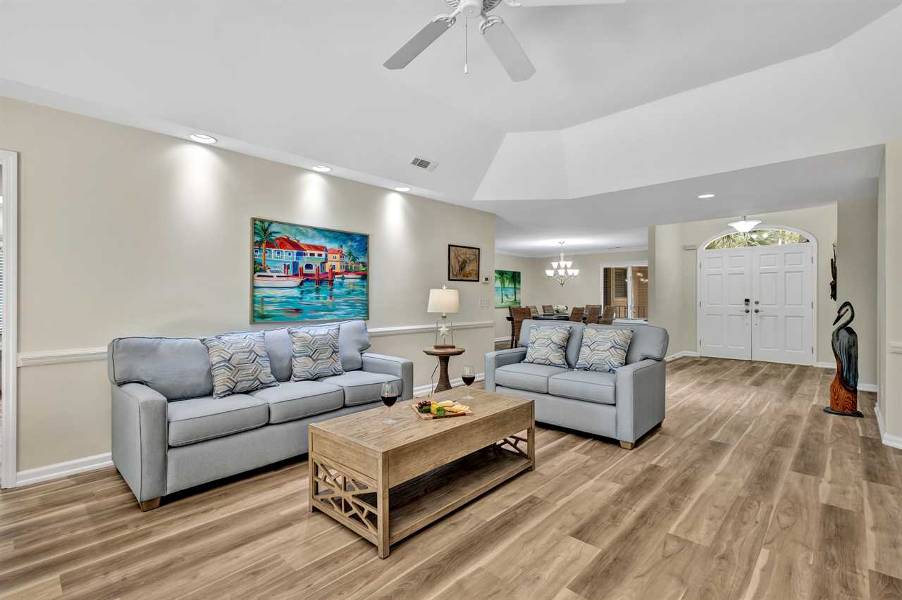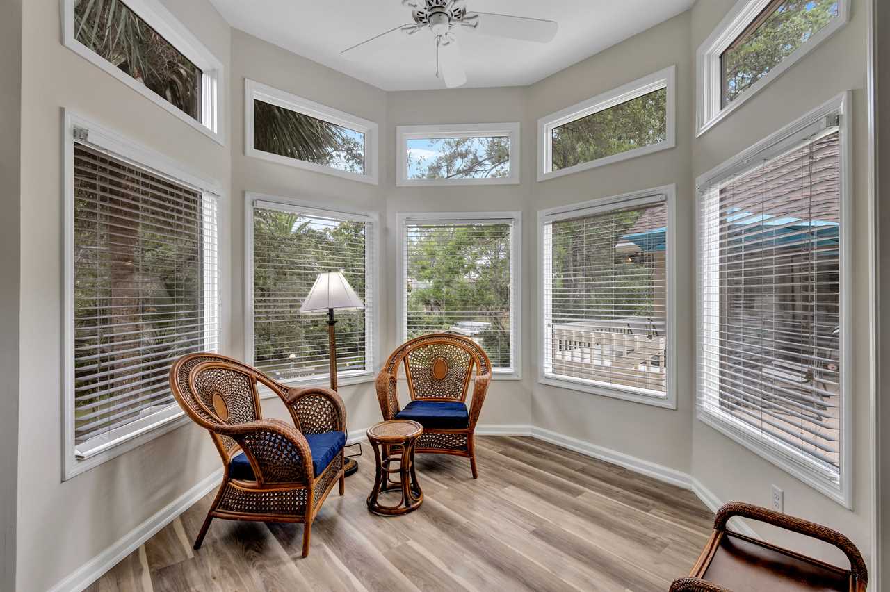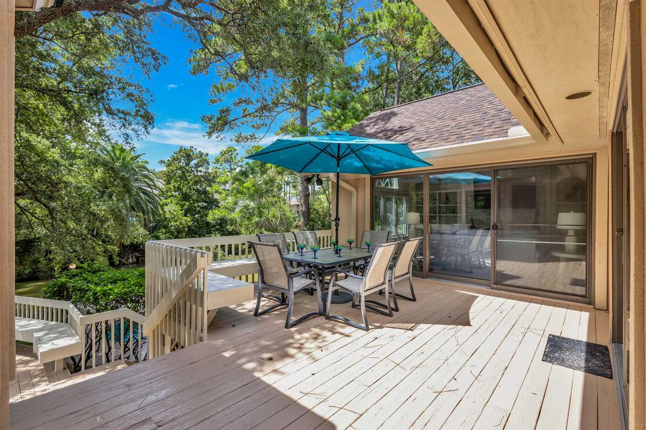 Step outside to a serene backyard oasis nestled among Lowcountry greenery, perfect for relaxation and recreation. Lounge by the pool, dine al fresco, or launch a kayak directly from the private dock into the Palmetto Dunes lagoon system.
