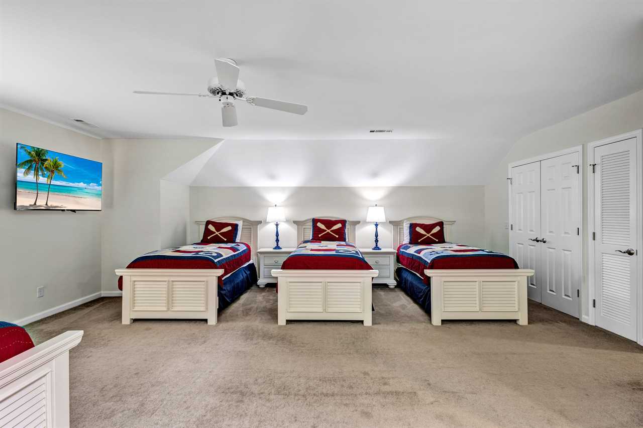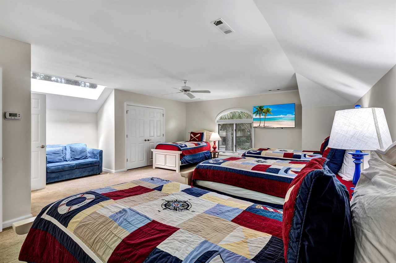 ✓ Bedroom 4: Four Twin beds with en-suite and walk-in shower, Smart TV
