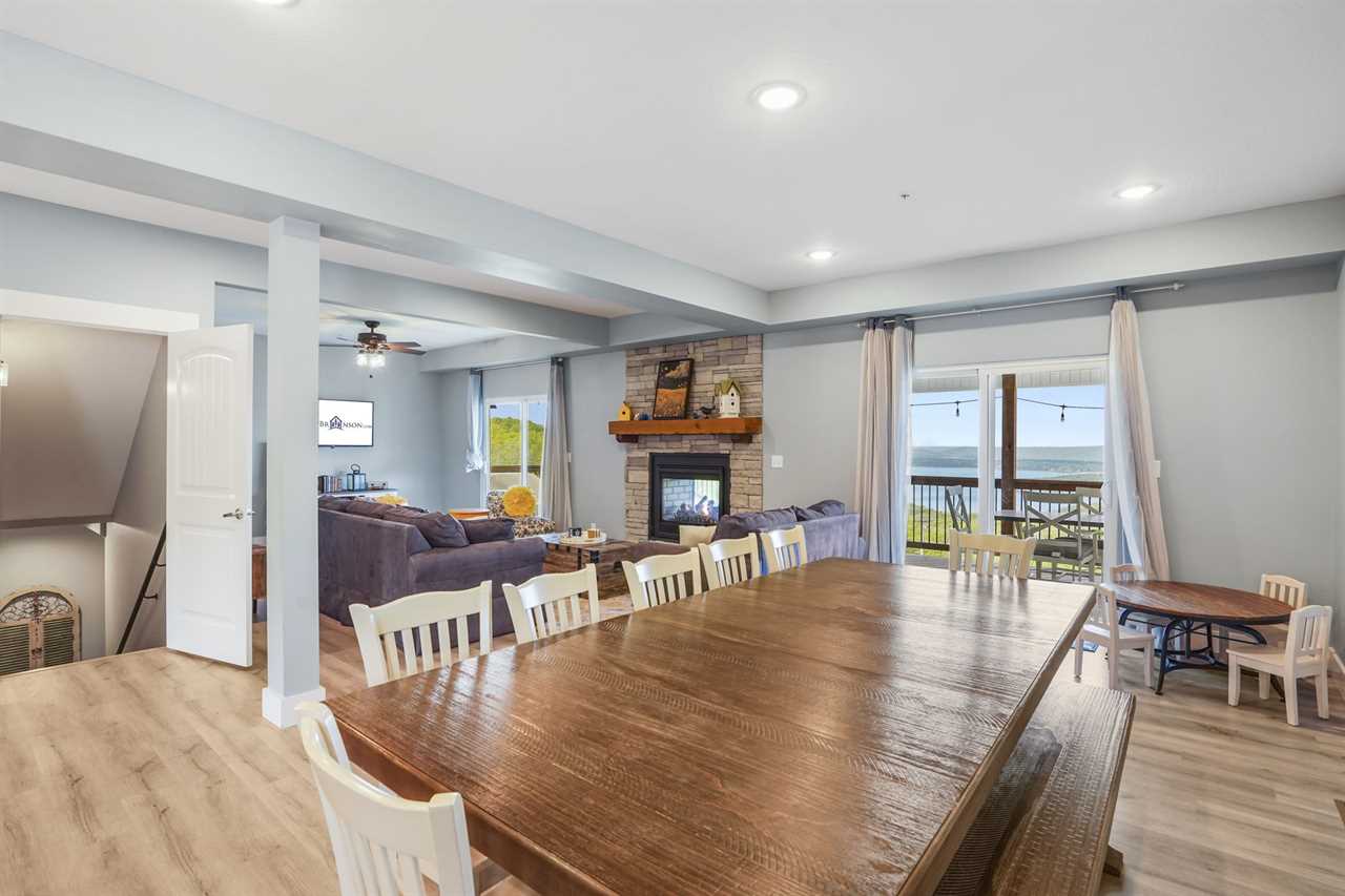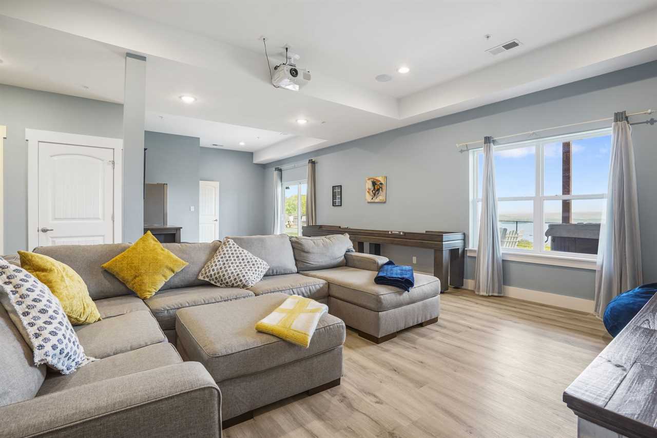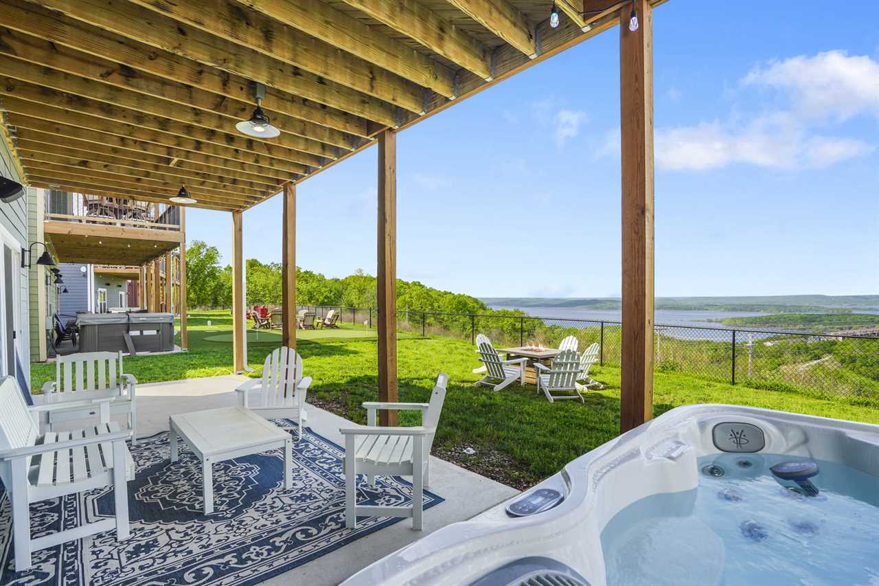 This vibrant home has 5 bedrooms and 5.5 bathrooms perfect for a group of 12 people. Gather the family by the cozy double-sided fireplace for a delightful movie night at the living room area. Craft gourmet meals -- be it breakfast, brunch, or dinner -- in the fully equipped kitchen, making every meal a cherished moment. Head downstairs to your cozy movie retreat, featuring a large projection screen, comfy sectional, and a handy kitchenette with an additional fridge--everything you need for a perfect night of films and snacks. A shuffleboard table awaits in this area, perfect for kids and the young at heart to enjoy some friendly competition. Step onto your private deck to take in the breathtaking views of Table Rock Lake as you unwind by the outdoor fireplace. Your stay comes loaded with $400 in attraction tickets each day for endless adventures.