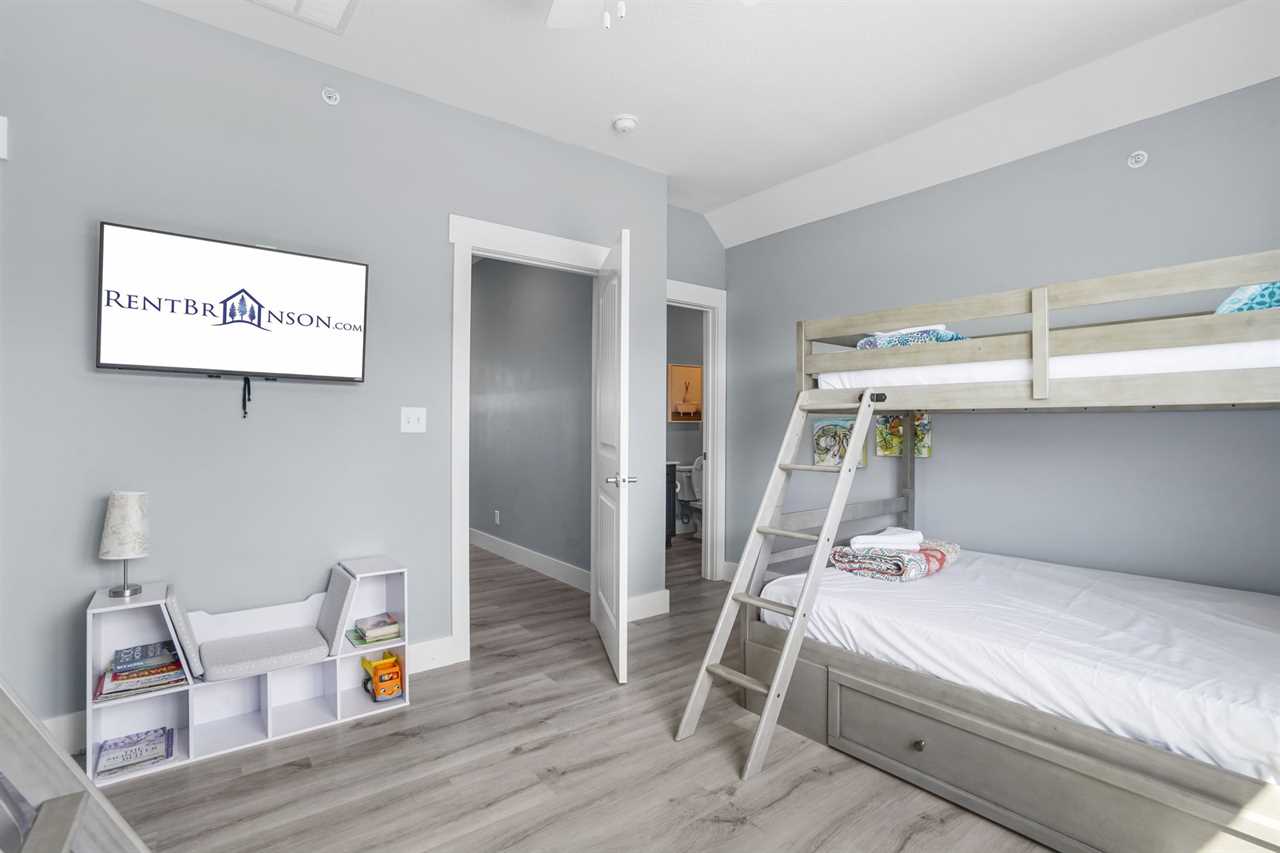 Bedroom 3: Two Twin over Full Bunks Ensuite with a tub/shower combo; Reading Nook & TV