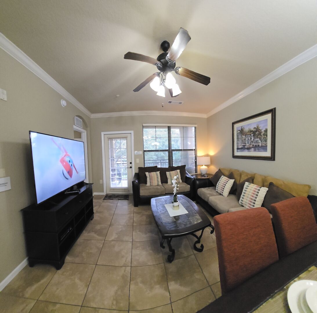 Unwind in the cozy living area with cable TV and free Wi-Fi. Plenty of room for movie nights or downtime between park adventures.