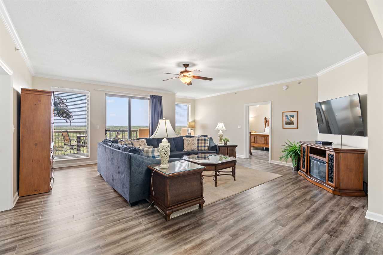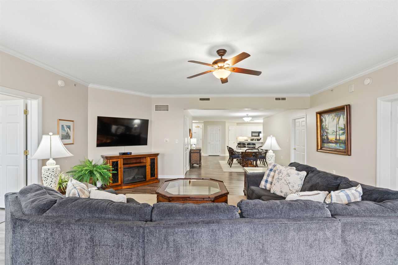 Perfect home away from home for large or extended families and small groups. This spacious 4BR/3BA condo also has a fully equipped kitchen, large open living area and full size washer/dryer. There is plenty of space for everyone to be comfortable and feel at home. Walk out onto the wraparound balcony from the living room to take in the beautiful resort landscaping and southern coastal ocean view. The balcony is also a great place to wind down at the end of a busy day at the beach, while watching a beautiful sunset and planning for tomorrow.