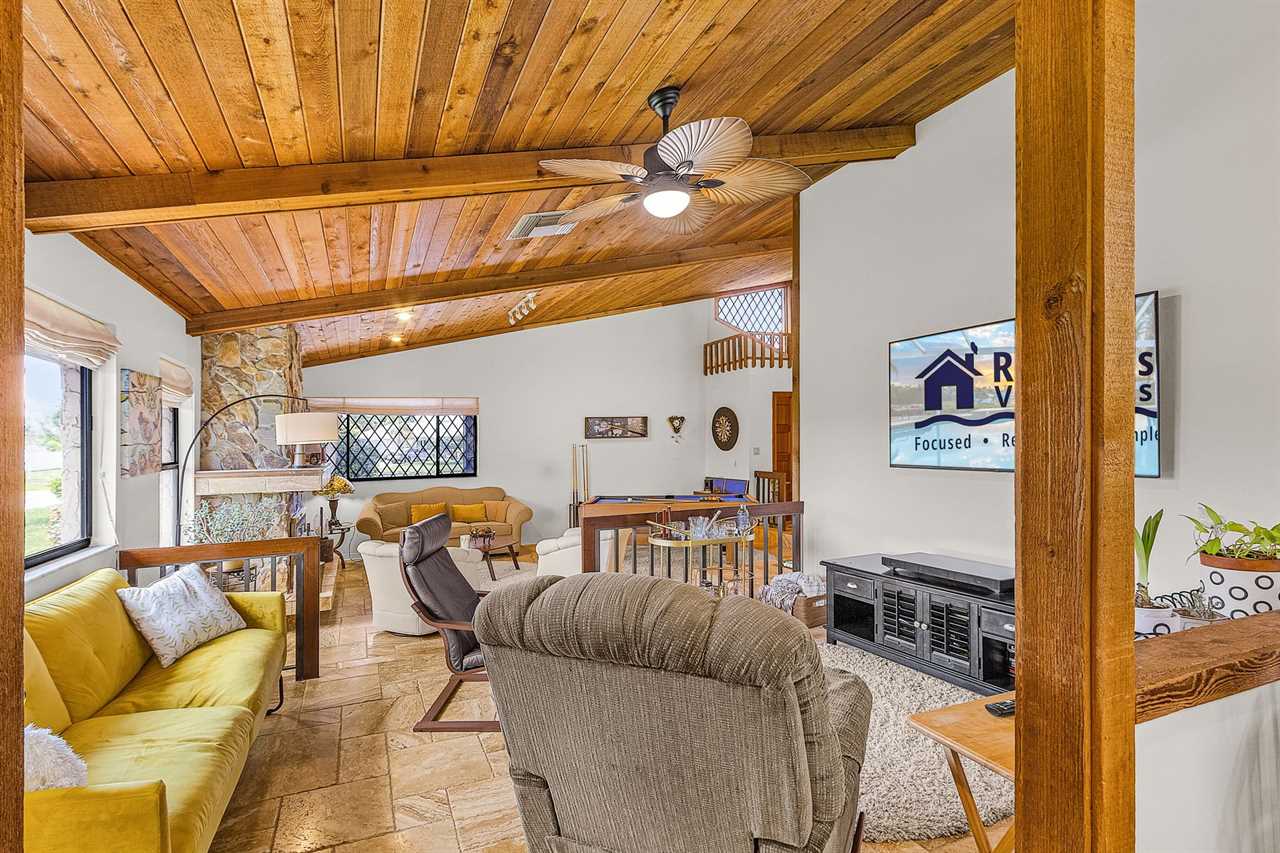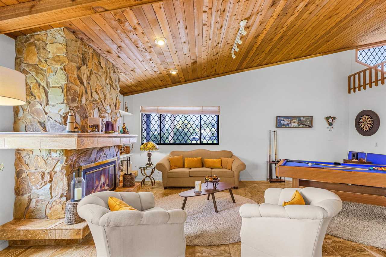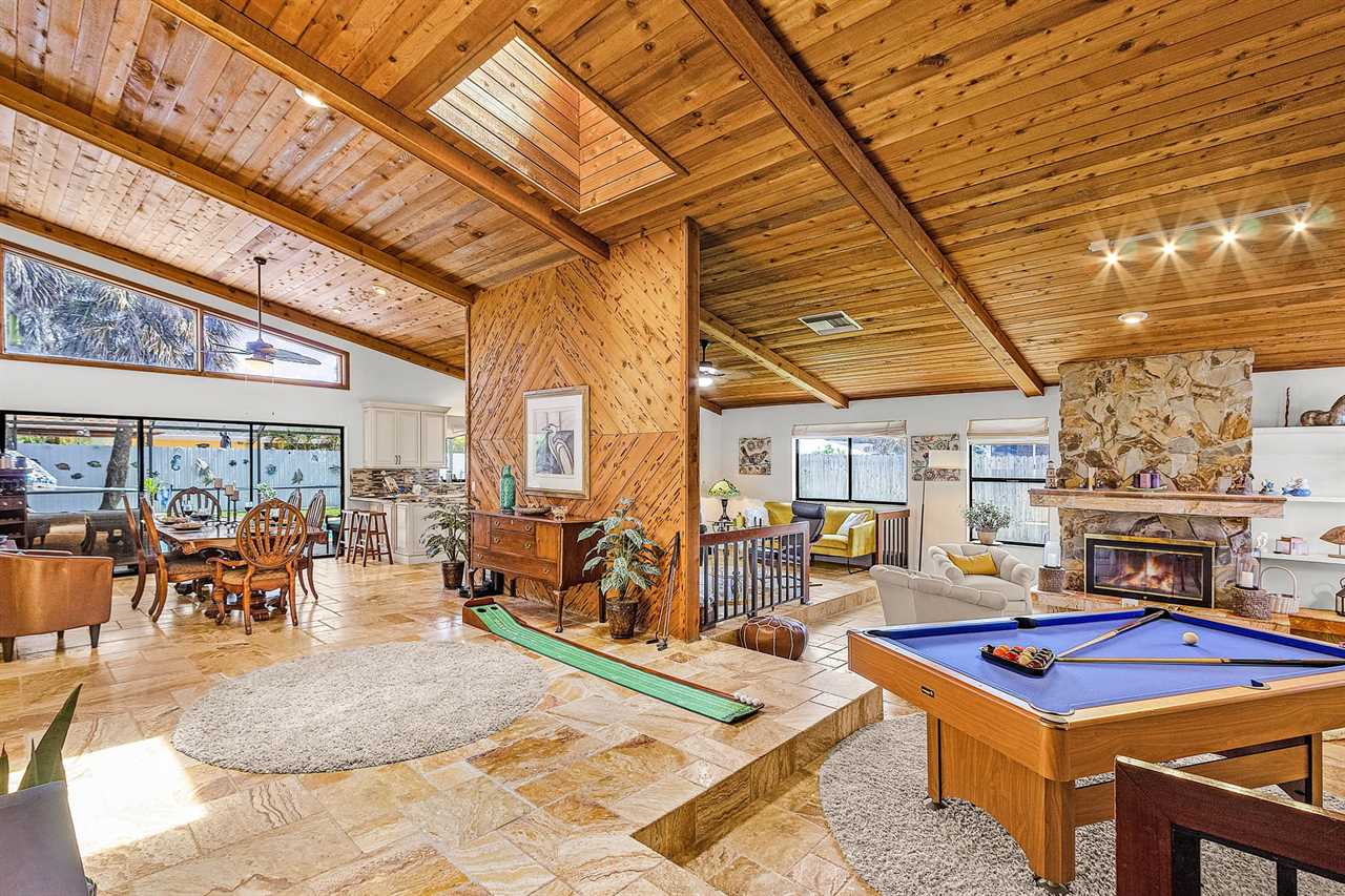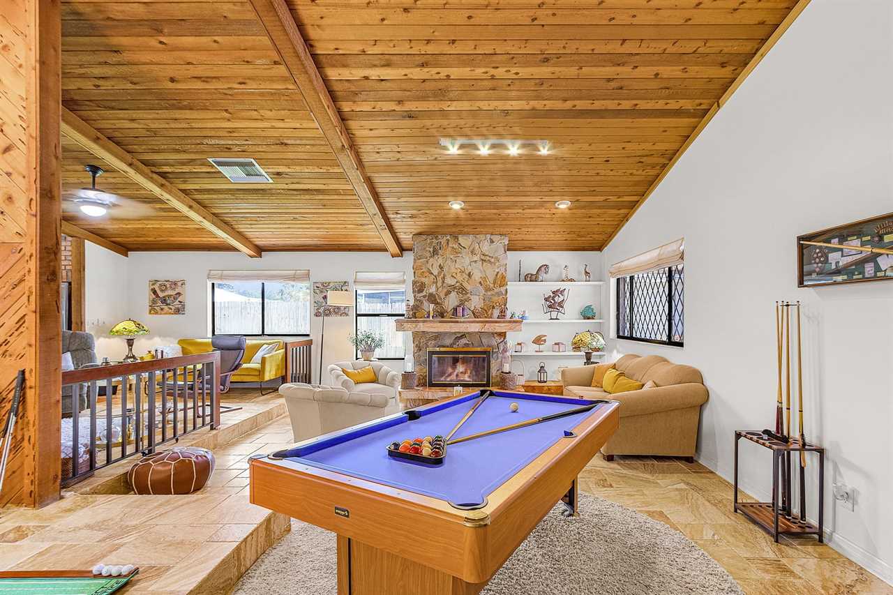 Indoor Pool Table: Unleash your competitive side with a game of pool in the spacious living room, adding fun to your stay.