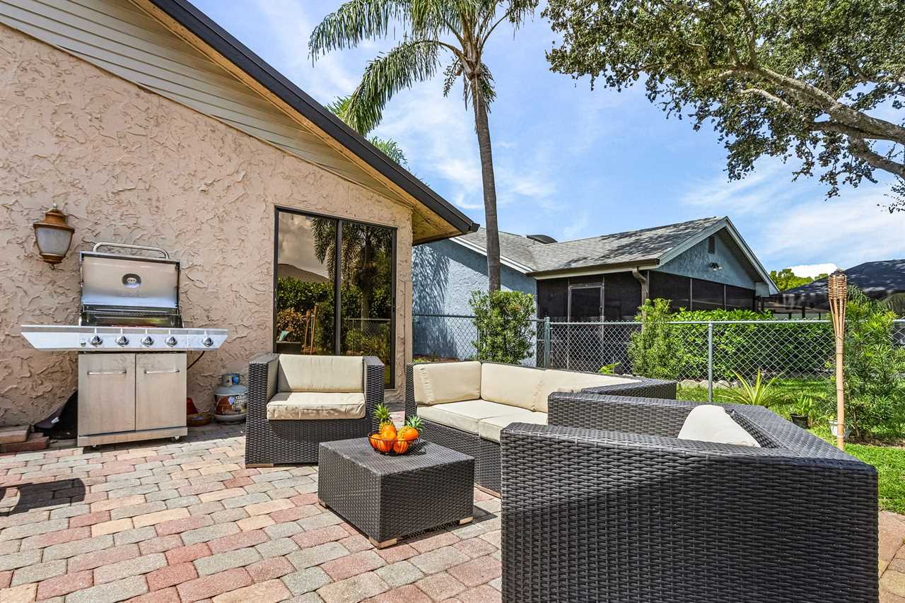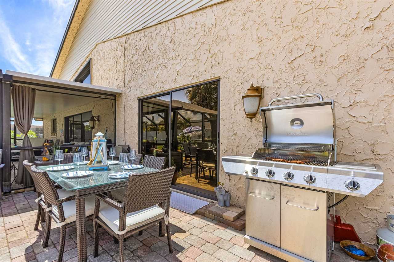 Outdoor Dining and Living with Grill: Savor delicious meals prepared on the grill, dining al fresco with family and friends in the charming outdoor living area.