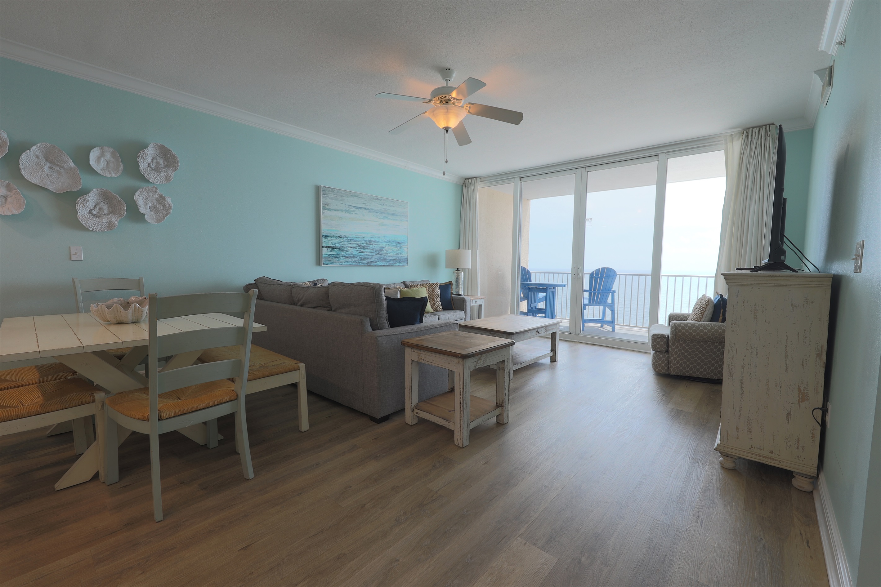 Welcome to San Carlos 1707, a beautifully appointed 3-bedroom, 3-bathroom beachfront condo in the heart of Gulf Shores. Located on the 17th floor, this spacious unit features a large balcony with sweeping views of the Gulf of Mexico and white sandy beaches.