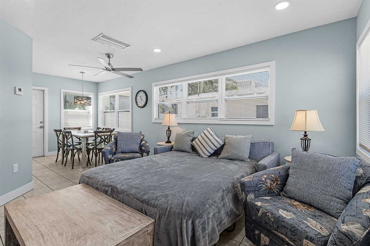 Escape to the sun-kissed shores of Siesta Key and immerse yourself in the laid-back luxury of Aloha Kai #49. This charming beach house is your perfect retreat, where the soothing sounds of the Gulf of Mexico and the vibrant energy of Crescent Beach create an unforgettable vacation. Featuring two comfortable bedrooms and accommodating up to six guests, making it ideal for travelers seeking a simple and relaxing stay close to the beach, Aloha Kai #49 invites you to kick off your shoes, sip morning coffee on your private patio, and dive into a world of relaxation and adventure.