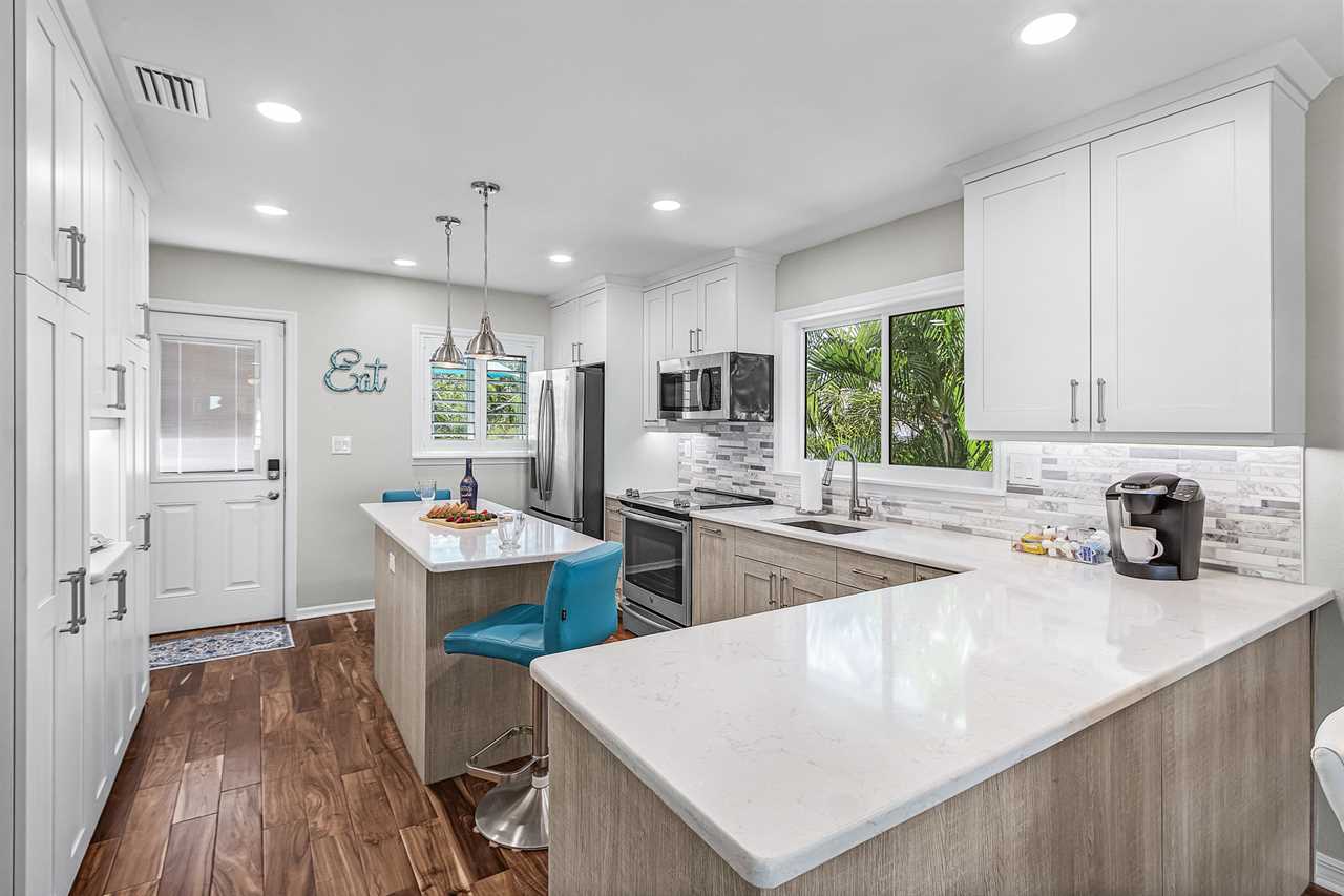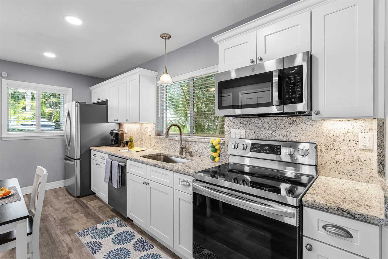 Two Fully Equipped Kitchens with Contemporary Style: Prepare your favorite dishes with ease in two sleek kitchens, each boasting modern appliances, Keurig coffee makers, white cabinetry, and stylish backsplashes. A great place to challenge your inner gourmet and gather with friends and family.