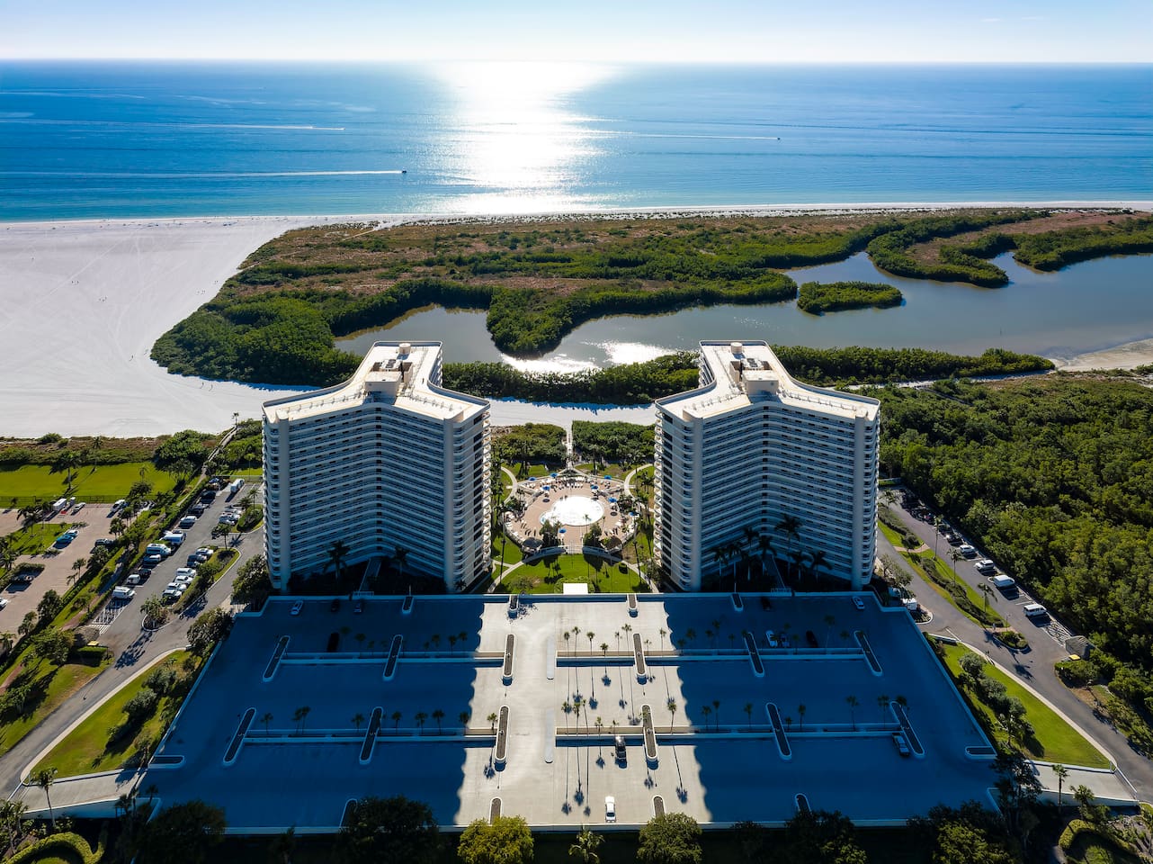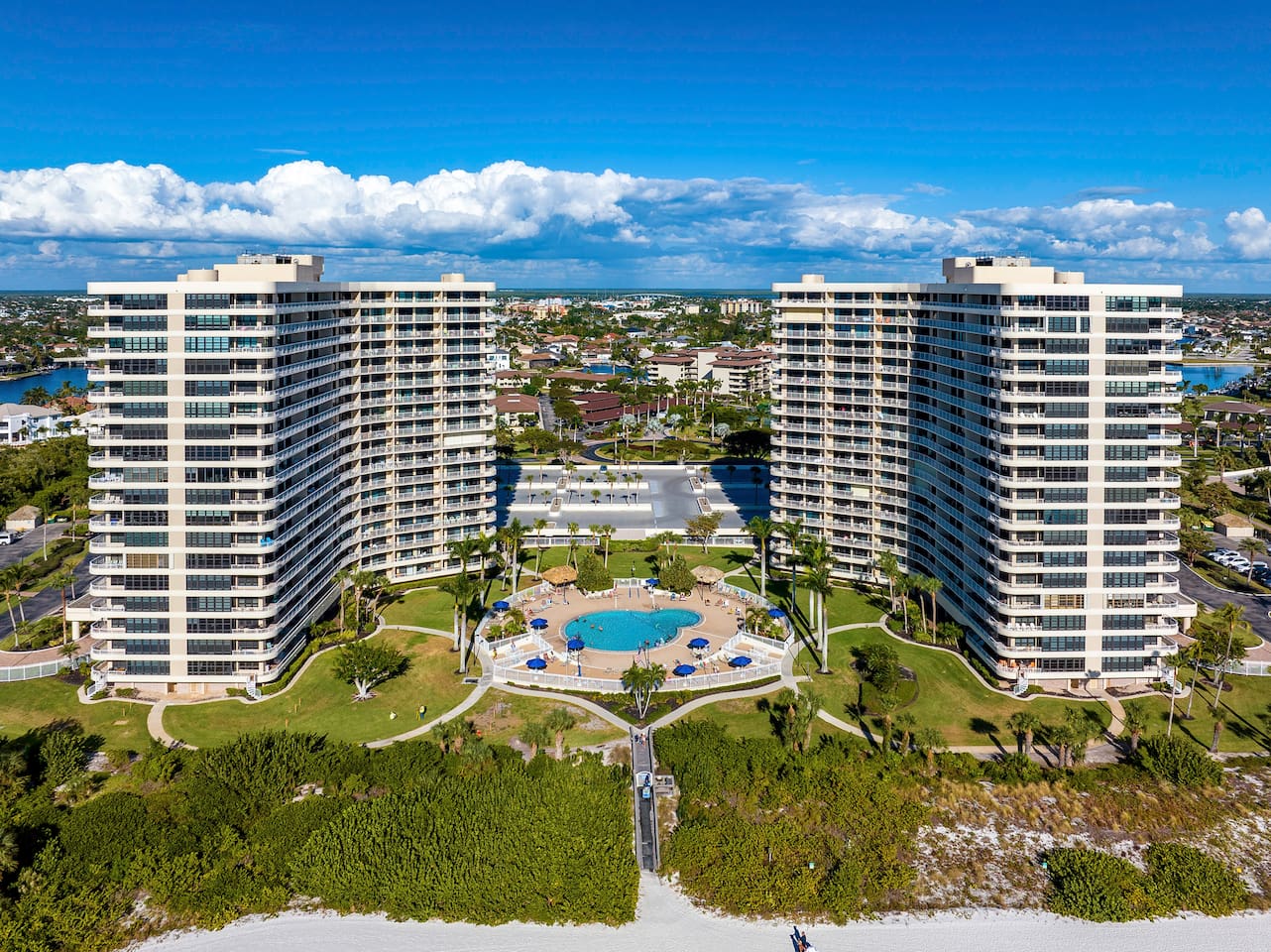 The condo community has 19 floors total. On floor 17, your views of Marco Beach through every room are expansive and awe-inspiring.