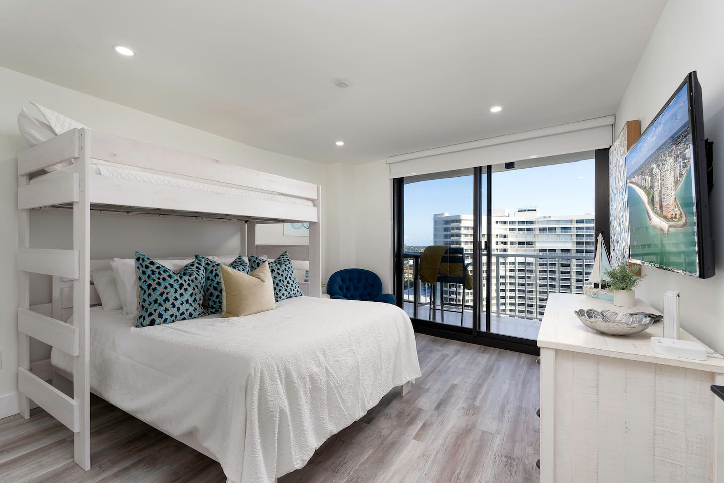 ✔ Accommodates 7; 2 bedrooms with 1 king, 1 full-over-queen bunk bed, and 1 sofa bed