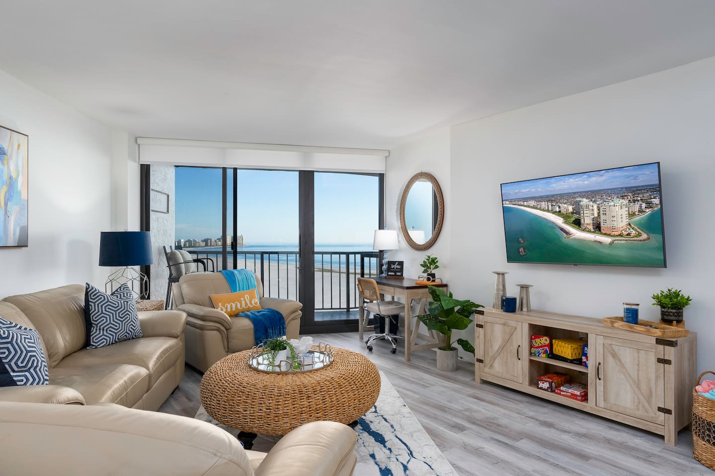 ✔ Living Areas: Spacious living room with a flat screen Smart TV