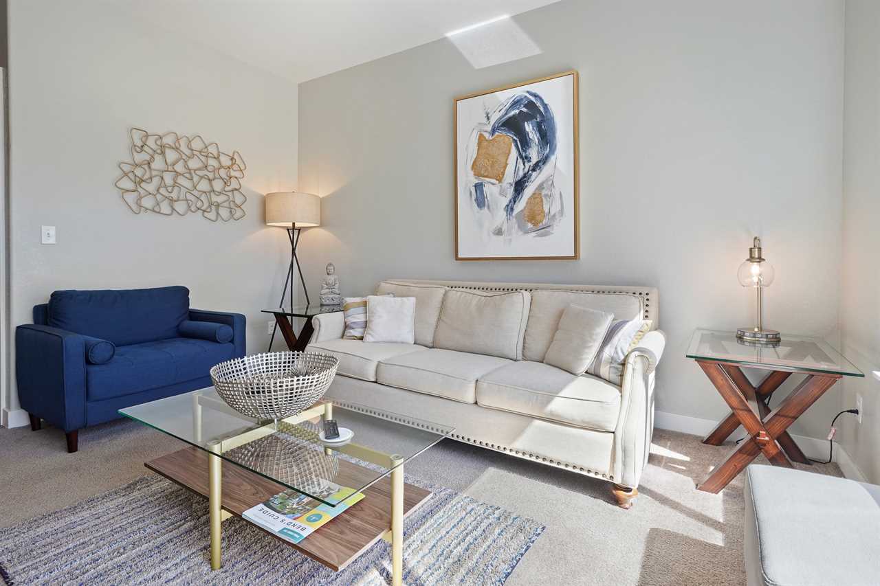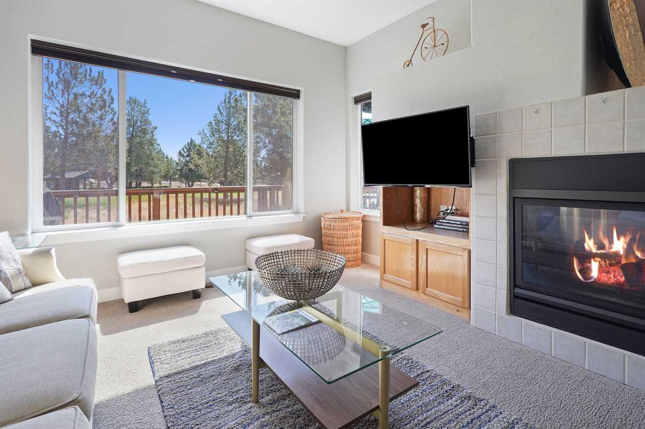 - Warm and inviting living room with smart TV and fireplace