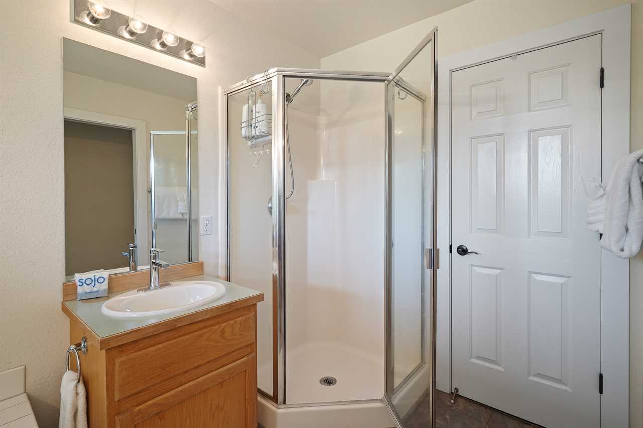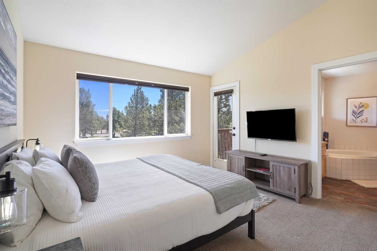 - Master Bedroom: King bed, full bath, smart TV